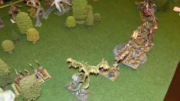 2. Und ein paar Impressionen aus dem Spiel gegen Arrahed (Tiermenschen-Monster gegen eine Liste voller Baummenschen). Was man sieht, ist wie die Tiermenschen die Elfen einkesseln. Die Elflein wurden danach ordentlich überrannt.![]()