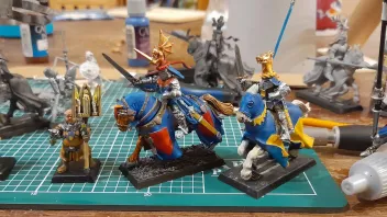 Ansonsten habe ich noch einen Skingschamanen und einen Ritter grundiert. Mit diesem Ritter besitze ich nun wenigstens fünf Ritter (der Grüne Ritter zählt nicht) von GW und kann eine Einheit stellen. Die restlichen Ritter meiner Bretonnen kommen von Fireforge Games und Highlands Miniatures.