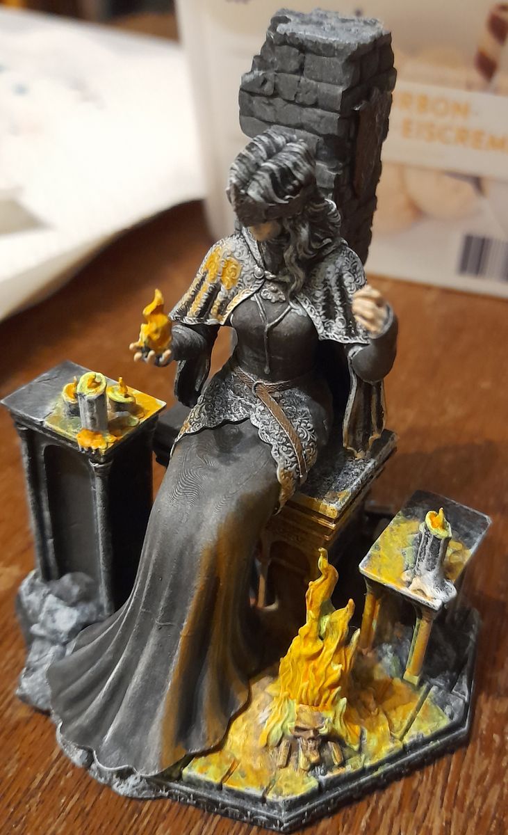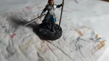 Sie hat ihre Ritterin beendet. Dafür, dass das ihre erste Miniatur war, finde ich sie sehr gelungen.