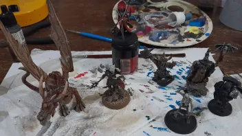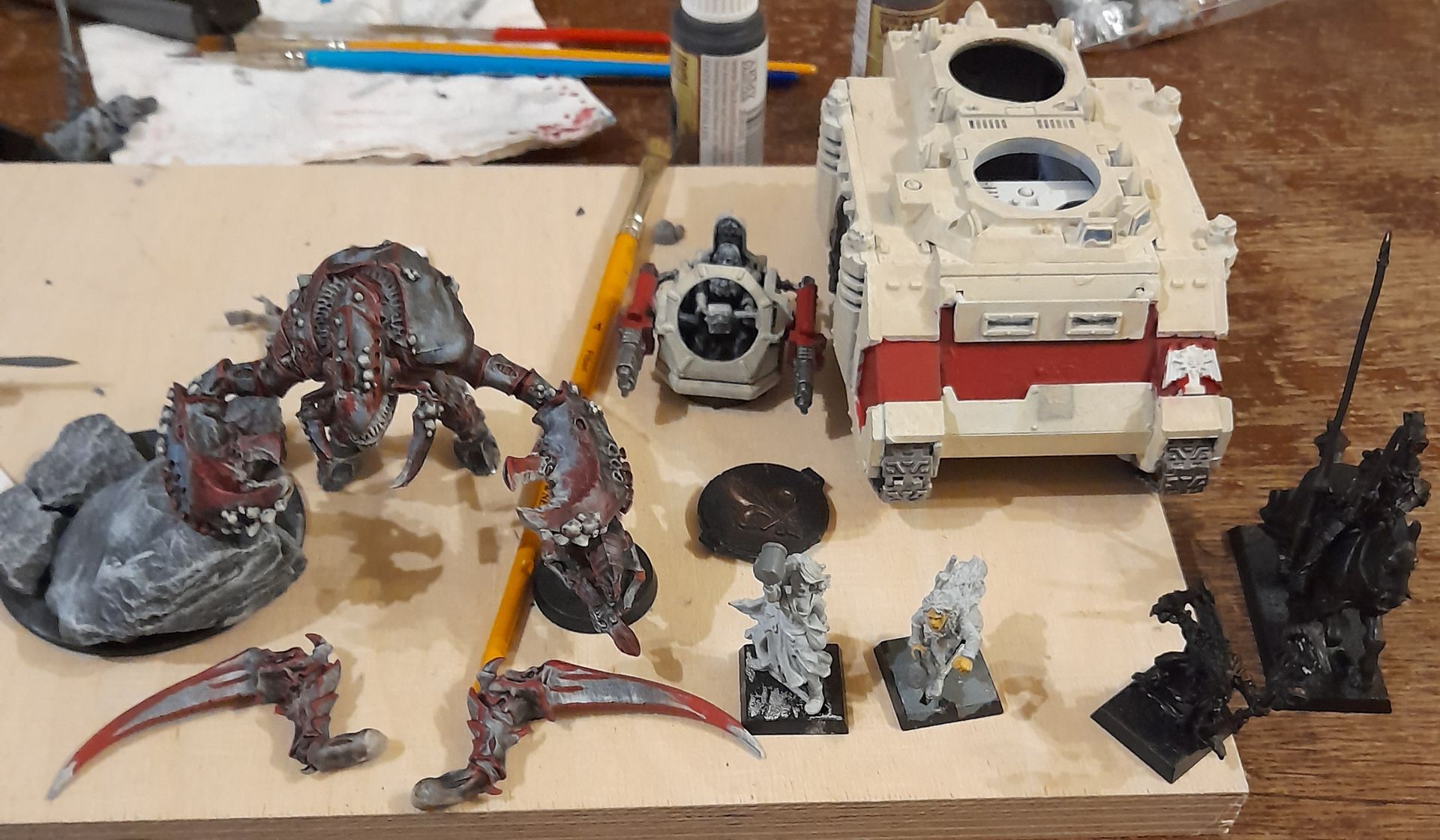 Gestern habe ich noch ein wenig weiter gemalt. Die erste Großminiatur nähert sich der Vollendung und ich habe noch an der Nachtgoblin Sammlermini aus 2006 mich versucht. Da ich wohl bei den nicht unterstützen Armeen von ToW in Richtung der Vampirfürsten gehen will, habe ich auch an Heinrich Kemmler und Krell weiter gemalt. Ansonsten tendiere ich in Richtung Bretonen. Auf 40k Minis hatte ich gestern keine Meinung.