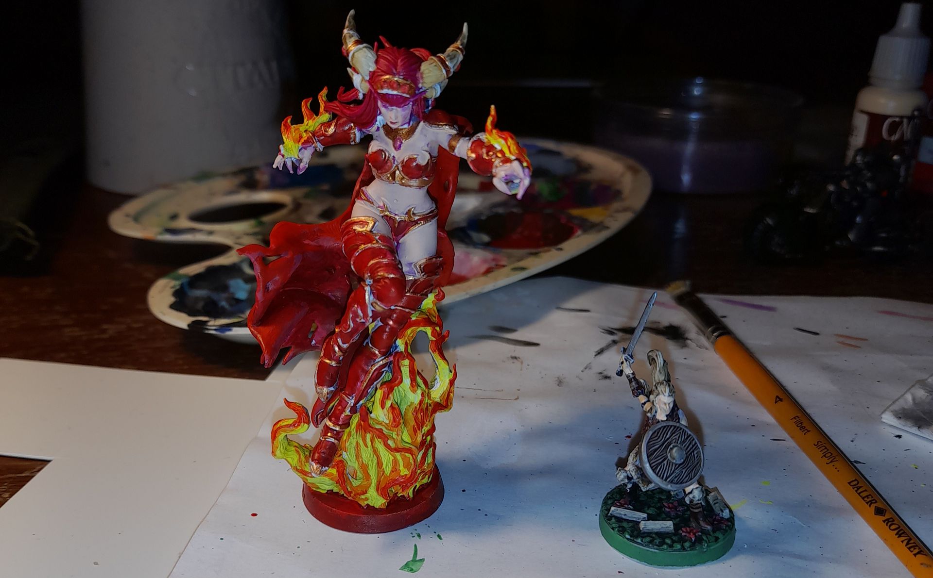 Gestern war lustig. Habe mit der Tochter unserer Freundin ihre erste Miniatur bemalt. Mein Highlight war, als sie mich mit strahlenden Augen anguckte und sagte, dass das Bemalen der Miniatur ja wirklich entspannend sei. Der trockene Kommentar vom Sohnemann war ein:"Das habe ich dir doch schon lange gesagt." Die Kinder sind fast gleich alt.