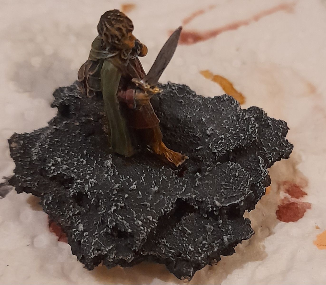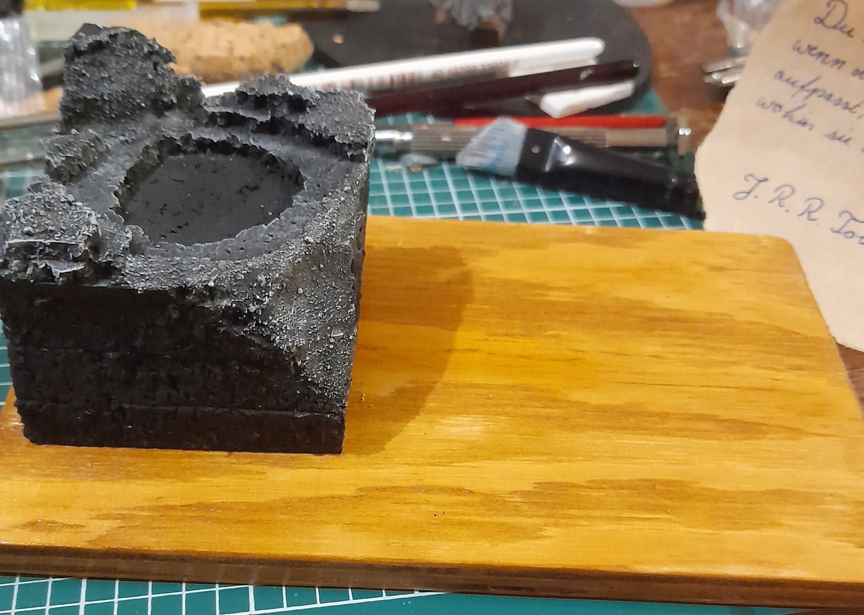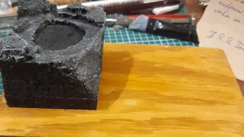 Das Modell werde ich nur "verfeinern", aber das Base..., grüner Rasen passt einfach nicht. Dementsprechend habe ich mit Kork und Sand ein passenderes Base gestaltet. Momentan bin ich noch am überlegen, ob ich mein Glück mit dem Flügel versuche oder nicht.
