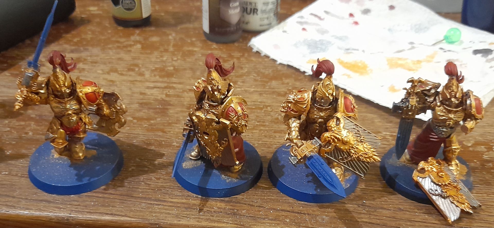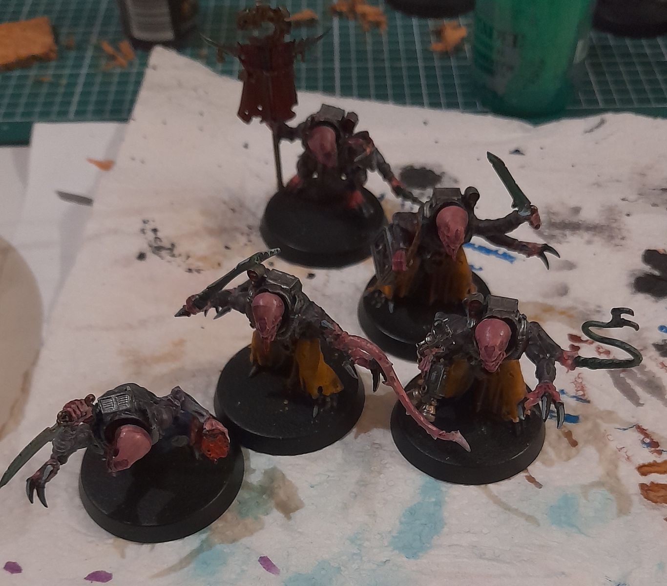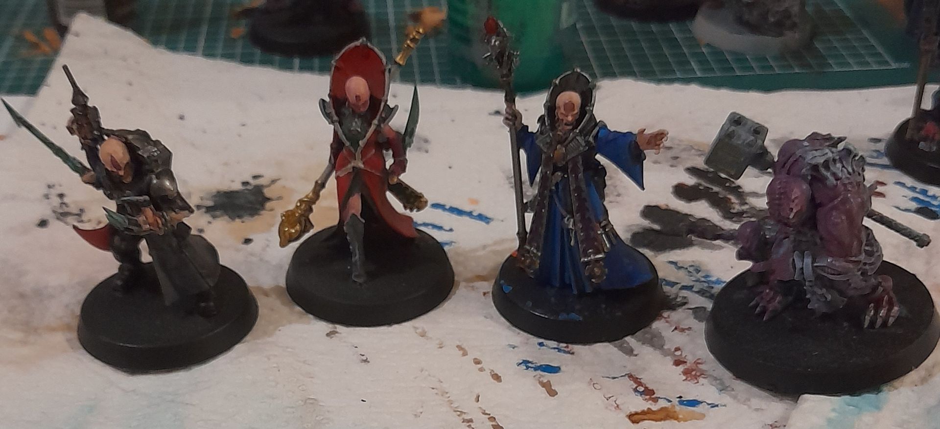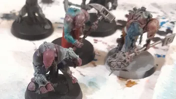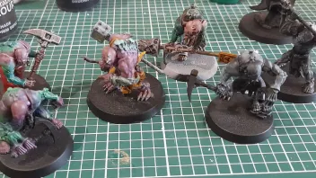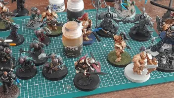 Heute hatte ich einiges auf dem Maltisch stehen. Zugegebenermaßen habe ich nur gemalt, um nicht einzuschlafen. Deshalb waren heute auch eher grobe Malschritte an der Reihe. Einzig der Klingenchampion und teilweise Captain Blueberry wurden mit ein paar Feinheiten bedacht. Der Patriarch wurde gestern fertig.