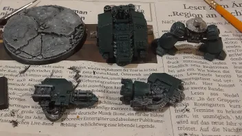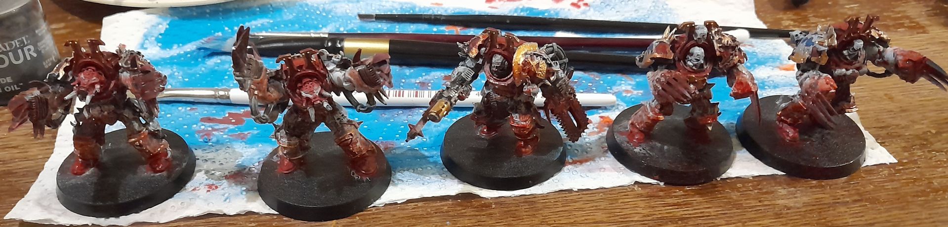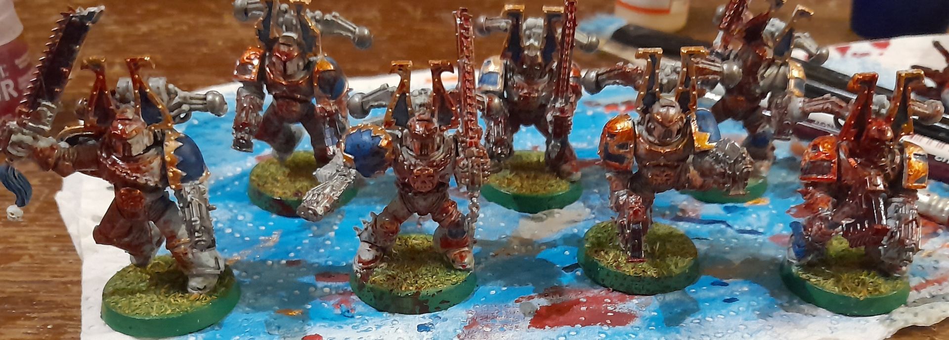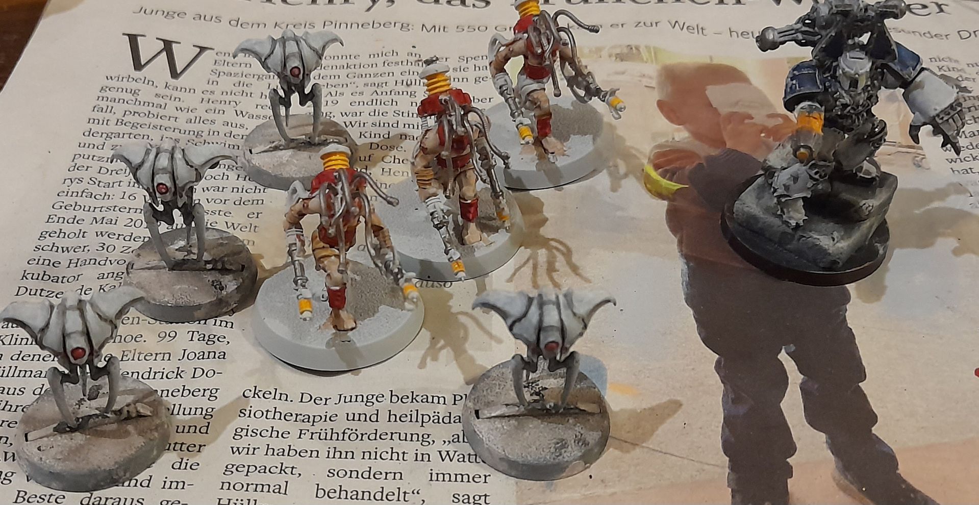 Nichtsdestotrotz habe ich heute bei den Spindeldronen weitergemalt, die Negavolt Kultisten und ein Charakterumbau bei meinen World Eaters angefangen. Nicht fotografiert habe ich die Wände und Schotten von Kill Team, an denen ich rumpinsele (morgen oder übermorgen hole ich die Airbrush raus...).