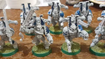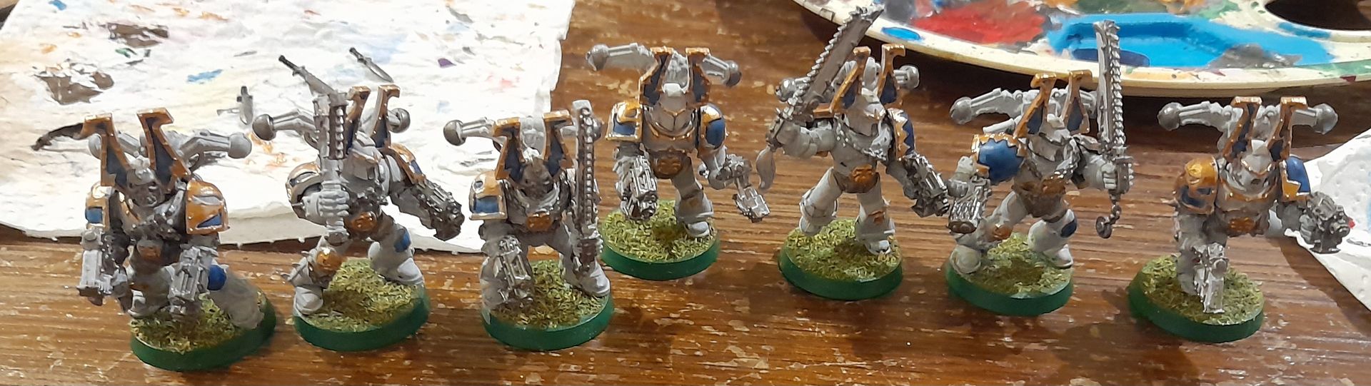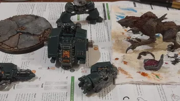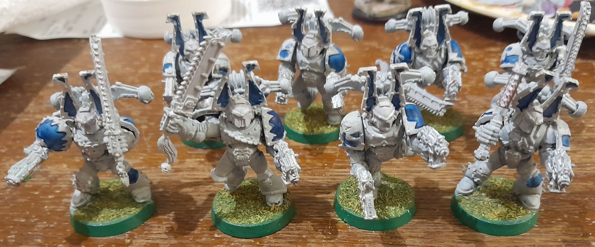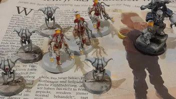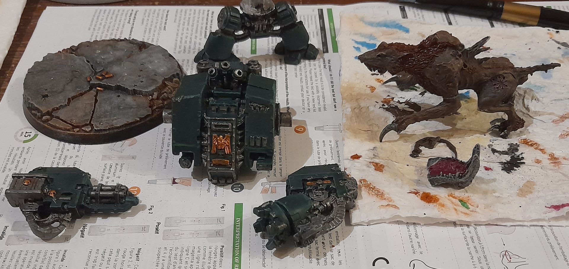 Nichtsdestotrotz habe ich heute bei den Spindeldronen weitergemalt, die Negavolt Kultisten und ein Charakterumbau bei meinen World Eaters angefangen. Nicht fotografiert habe ich die Wände und Schotten von Kill Team, an denen ich rumpinsele (morgen oder übermorgen hole ich die Airbrush raus...).