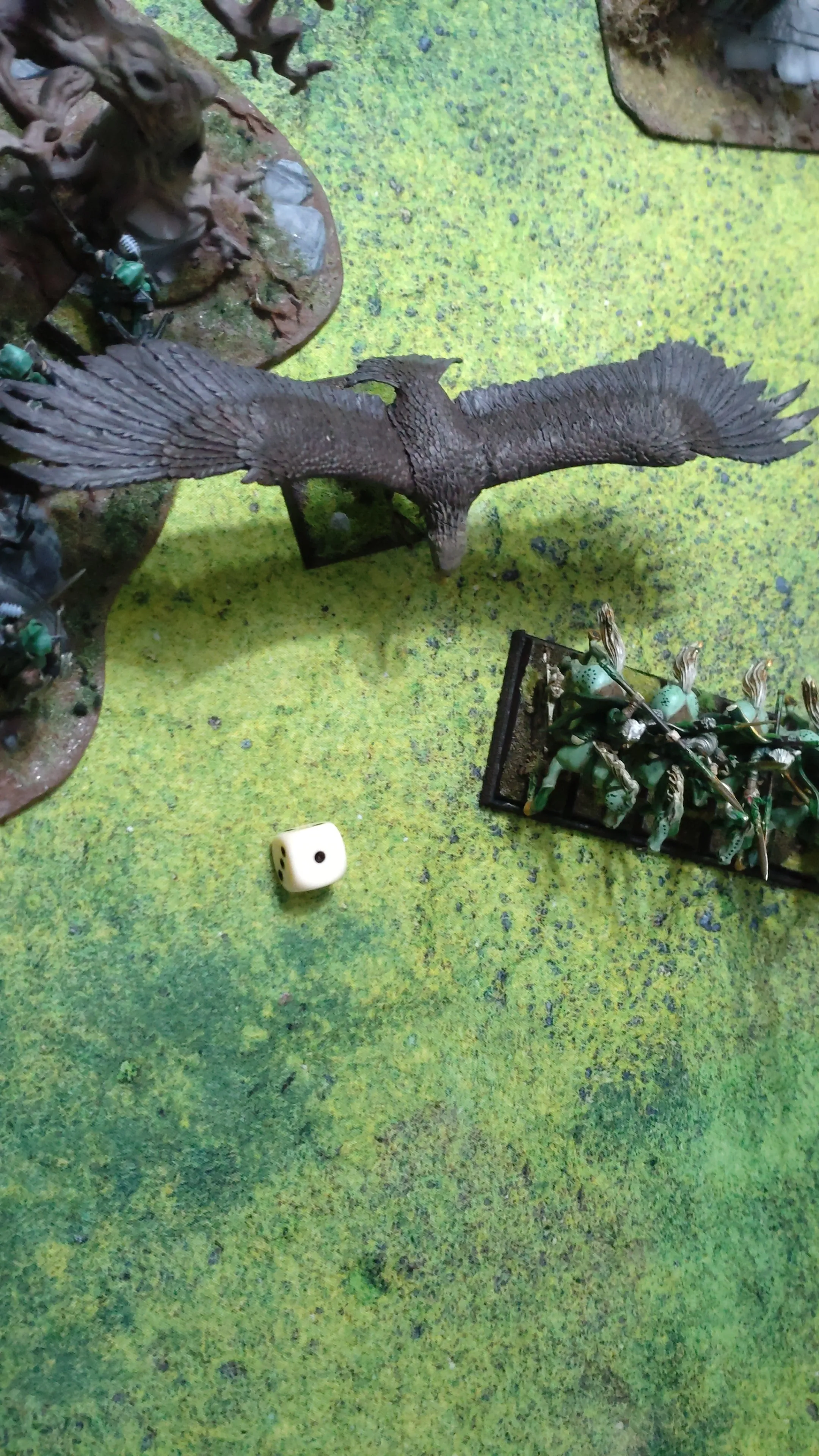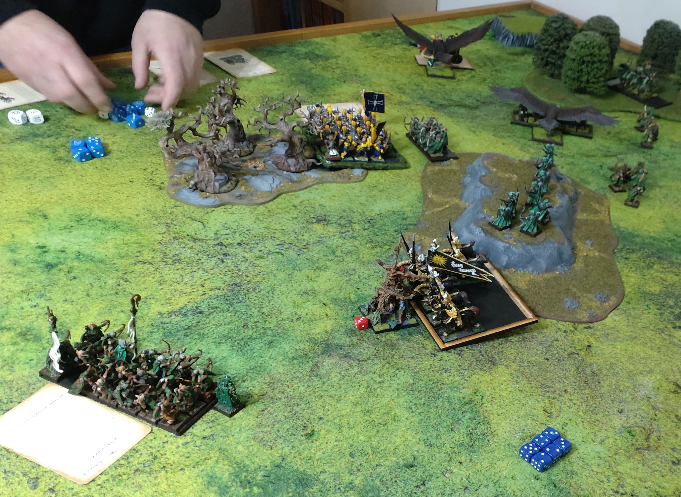 Die Hellebarden und ARmbrustschützen wurden systematisch mit Beschuss und einem Adler in der Flanke aufgerieben Einer der ikonischten Momente des Spiels war in der Magiephase 4 der Waldelfen. Fleisch sei Stein wurde durch meinen Magier gebannt. Erweckung des Waldes durch die Magiebannende Spruchrolle neutralisiert. Hatte nicht mehr dran gedacht, dass aber ncoh die Bewohner der Tiefe da waren und sechs Energiewürfel im Spiel. Spruch kommt mit 25 auf die Hellbarden..