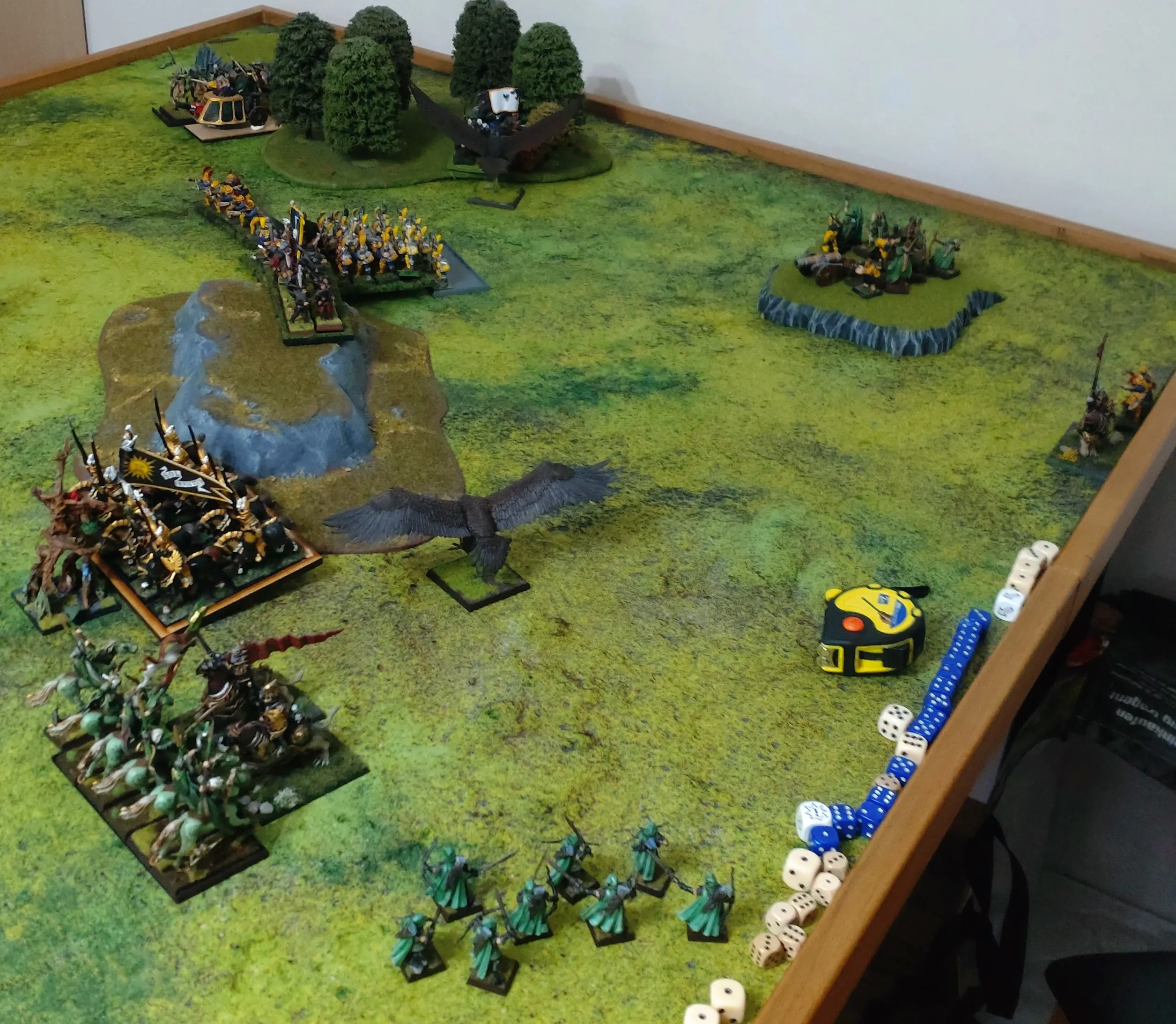 Zu Beginn des zweiten Zuges sah es dann so aus, dass die Waldreiter ihren Überfall so durchführten, dass der Dampfer sich nicht drehen konnte, ein Adler sprang zu den Bogenschützen, in denen der Feuerzauberer im Wald stand. Baummensch in den Sonnenorden. Wilde Jagd in die überlebenden Demis... Kundschafter auf die Kanone