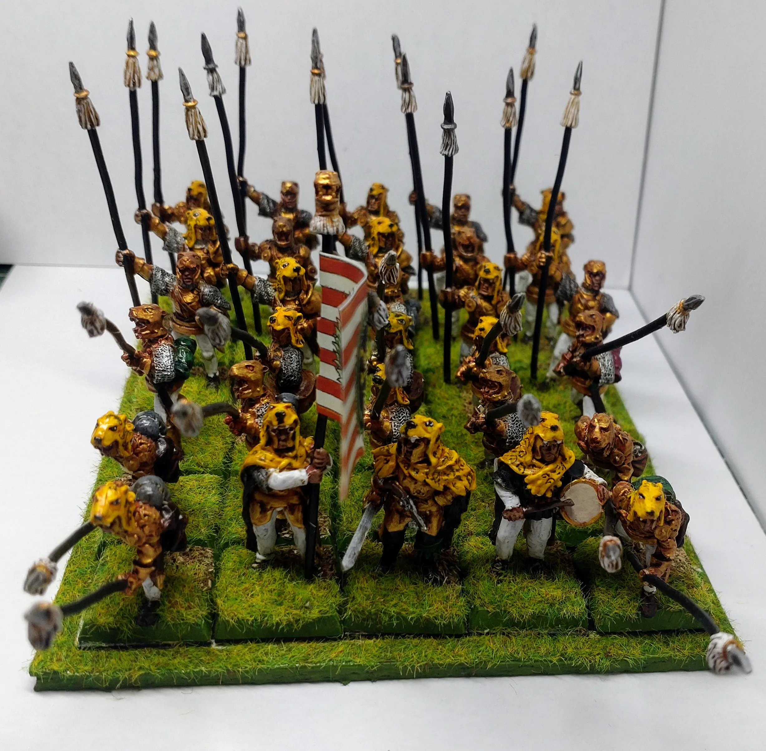 33 Hellbardenträger mit vollem Kommando mit 2mal 10 Armbrustschützen als Abteilung