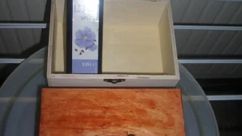 Die erste Schicht Leinöl pur hat die Box schön eingedunkelt, aber sie war mir noch zu hell.