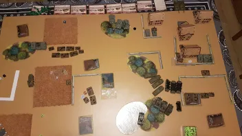 Mein Gegner schaffte wieder alle Moralwürfe. Aber erneut nicht seine Reserve zu rufen. Er rückte vor um alles was er hat auf meine HQ zu feuern... vergebens sie hielt stand.