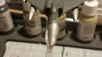 Der Rumpf und die Flügel sind ein Stück aus Resin. Der Rest besteht aus Zinn. Problem bei beiden Modellen war hier die sehr schlechte Passgenauigkeit zwischen der Nase und dem Rumpf. Außerdem war bei dem einen Flieger ein Teil des Heckflügels abgebrochen. Bei der einen Nase ist die "Antenne" an der Nase abgebrochengewesen. Habe vom Kumpel gehört das er ähnliche Probleme bei seinen Tornados hatte.