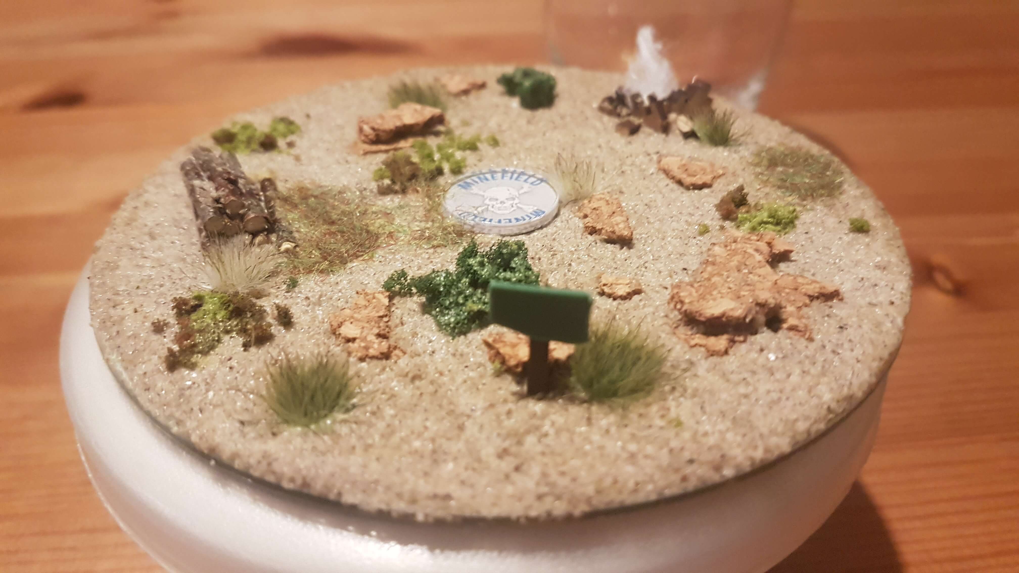 So das wars an Fahrzeugen nun kommt ein wenig Gelände. Bei einigen Missionen darf man pro angefangene 25 Punkte Minenfelder legen. Diese werden in der Regel nur mit einem Marker angezeigt und das Feld ist von dort 5-6 cm Radius. Dies entspricht so ziemlich genau einer CD