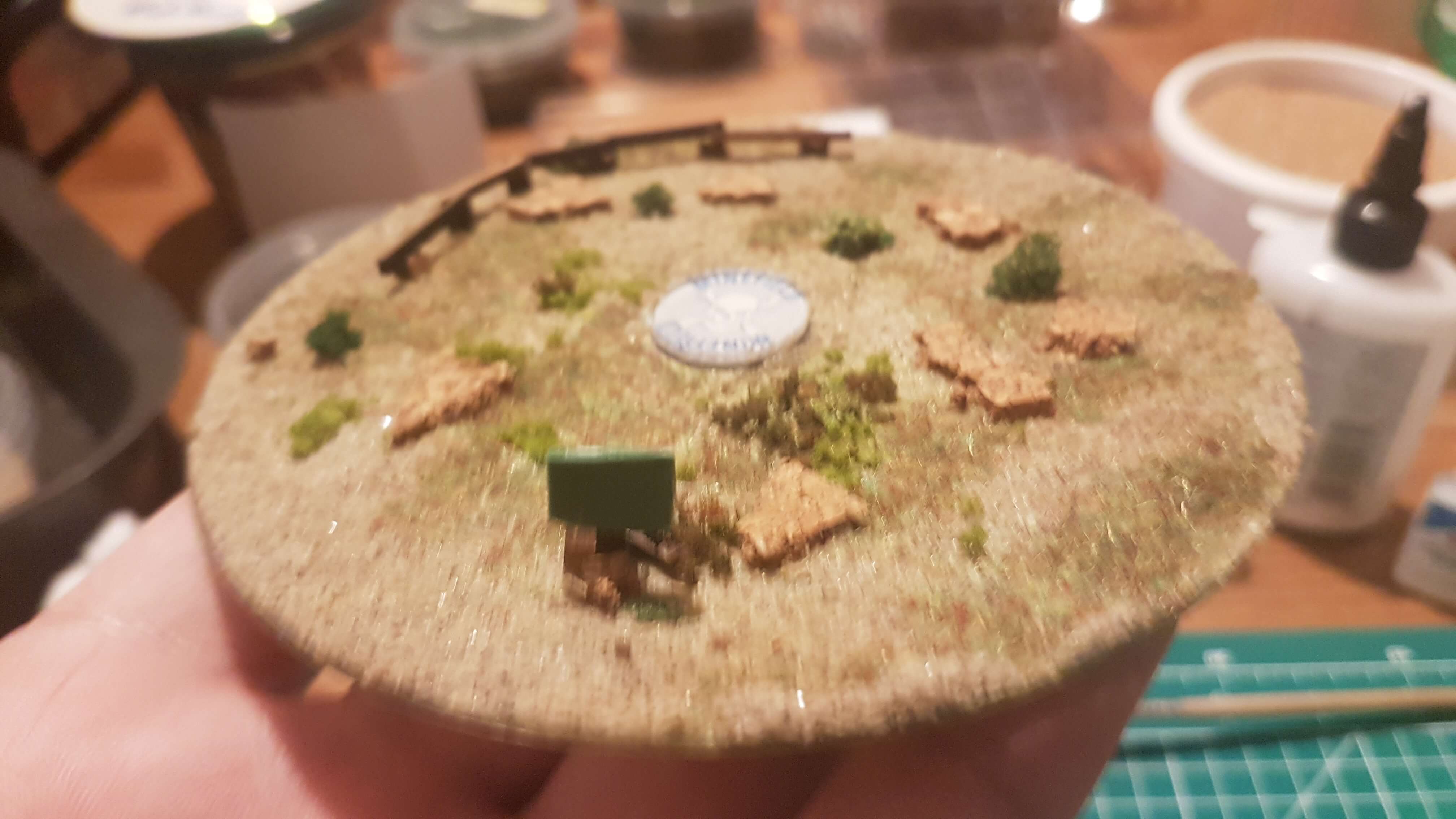 Alle Akzente fertig gemalt und aufs Base geklebt. Anschließend ein bissel Basegestaltung: