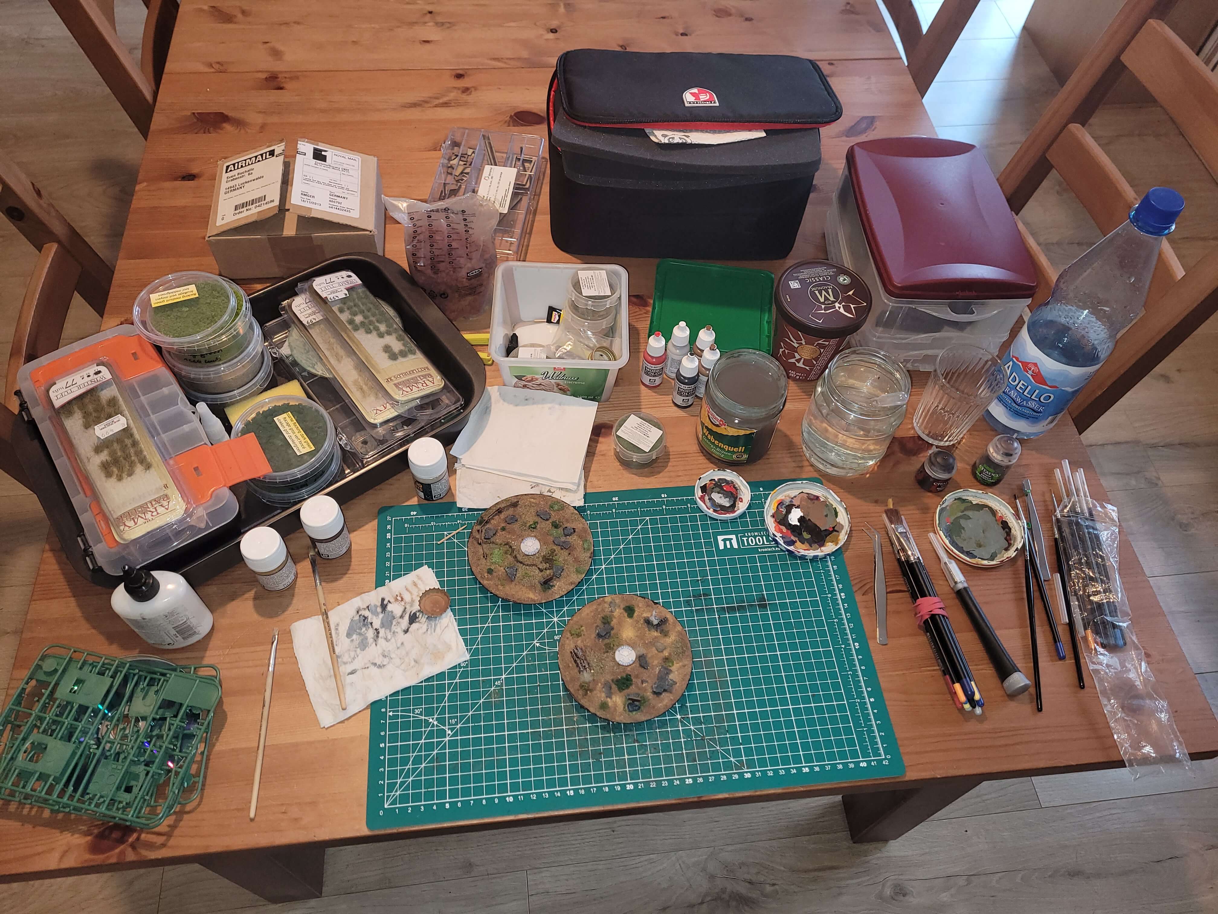 Hier ein Bild meines Malplatzes während des Bastelns.