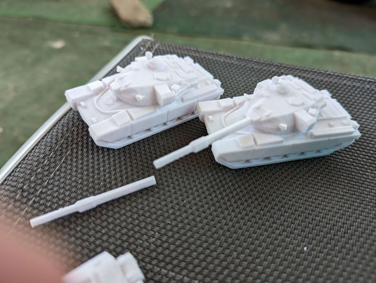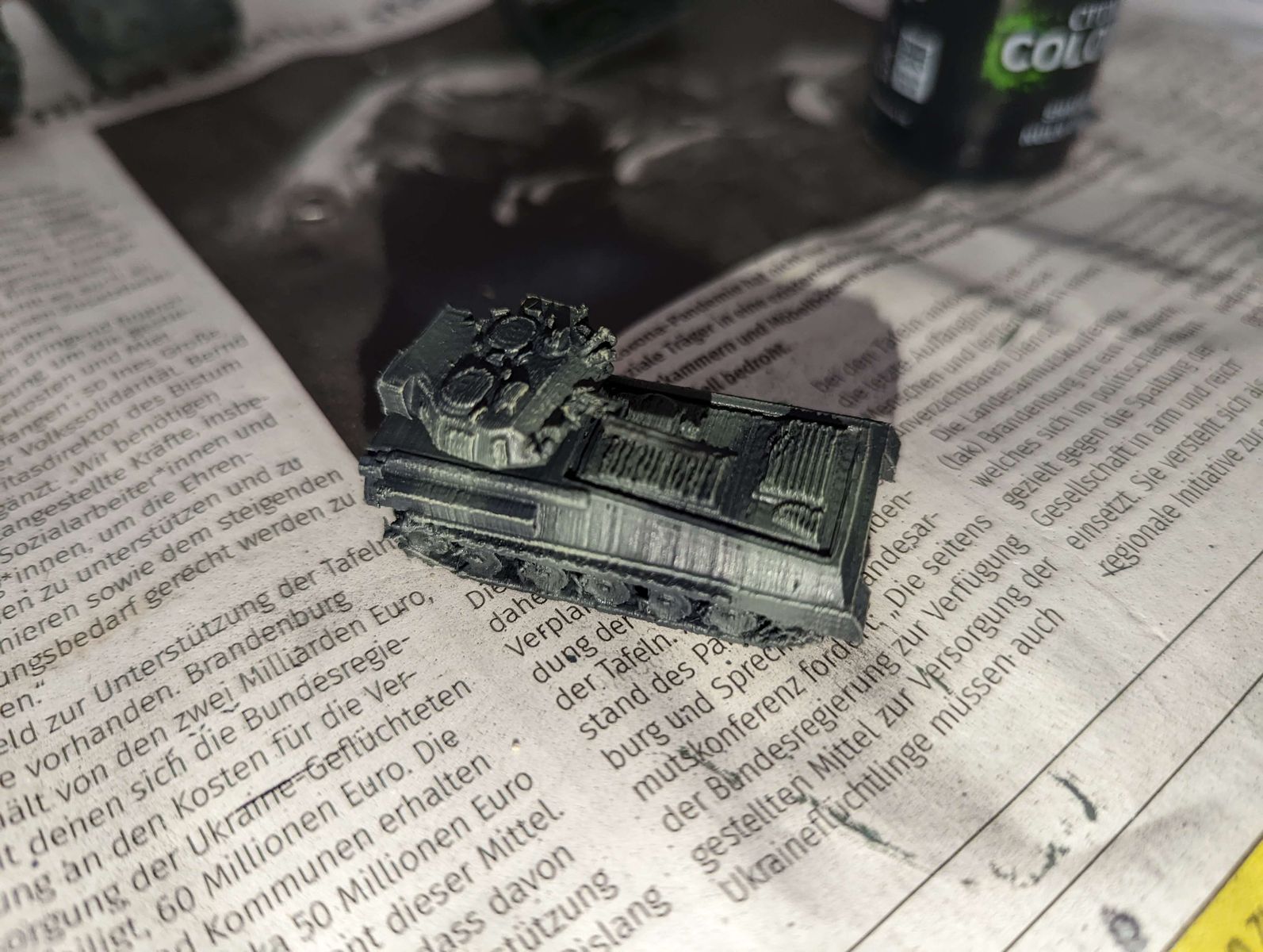 Erster fast fertiger. Etwas zuviel Licht aber denke man erkennt gut wo es hingeht. habe davon 4 Originalmodelle von Battlefront und ~20 3D-Drucks. Dieser hier ist ein 3D-Druck. Der Scimitar hat eine etwas längere Kanone. Aber bei den 2-3 mm bei den 1:100 Modellen habe ich nur die Türme der Scorpions bisher