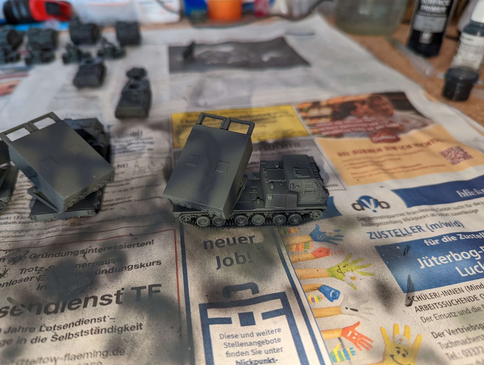Weitere drei M109 Artillerie habe somit nun sechs. dazu noch zwei M150 TOW. Beide Einheiten grundiert mittlerweile: