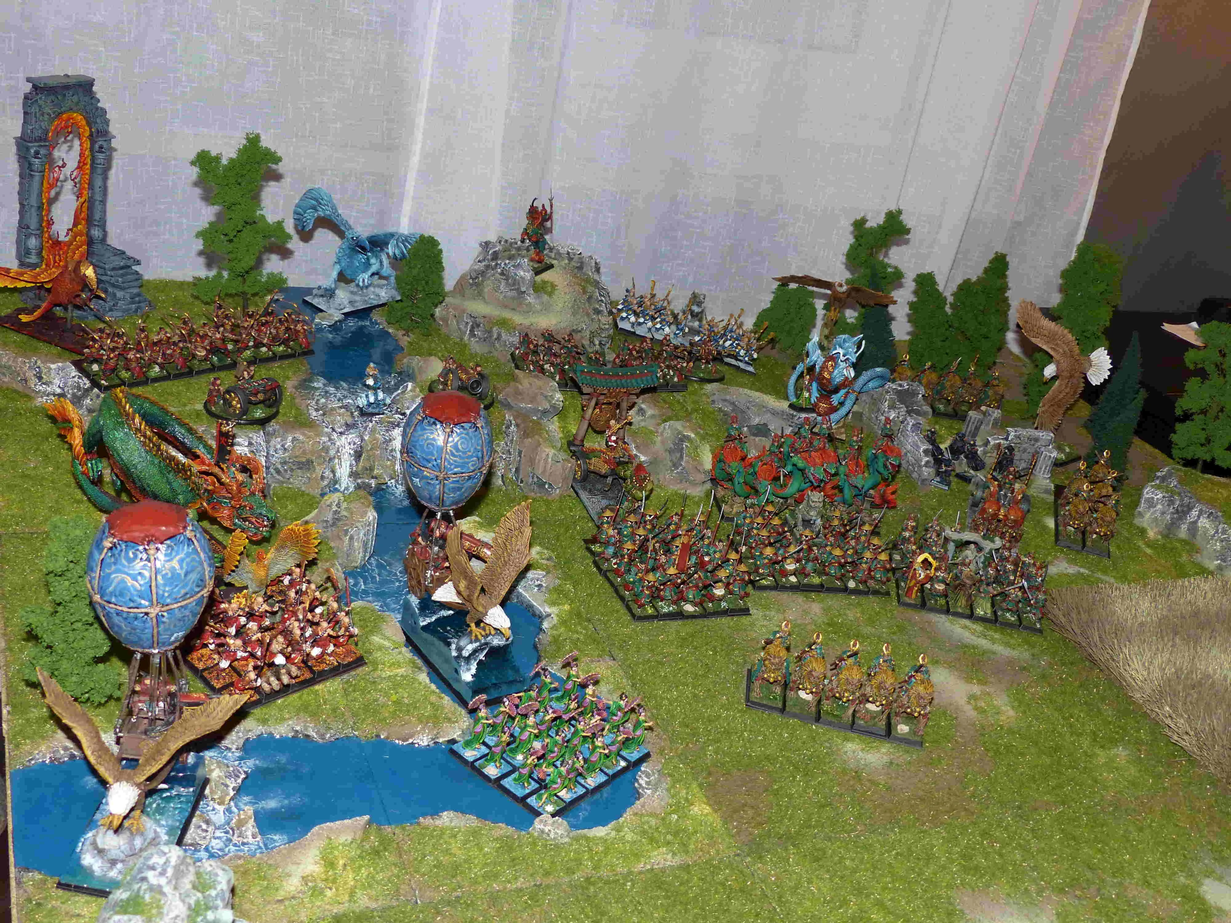 (Eine Idee für Schlachten mit Heiners Hochelfen war beispielsweise, dass die Hochelfen von Celeda Ablan mit der Verselbständigung der neuen Kultur unzufrieden sind und eine Neubesiedlung (und Umsiedlung nach Celeda Ablan) anordnen wollen - und dass auf diese Weise eine Art Bürgerkrieg entbrennt.
