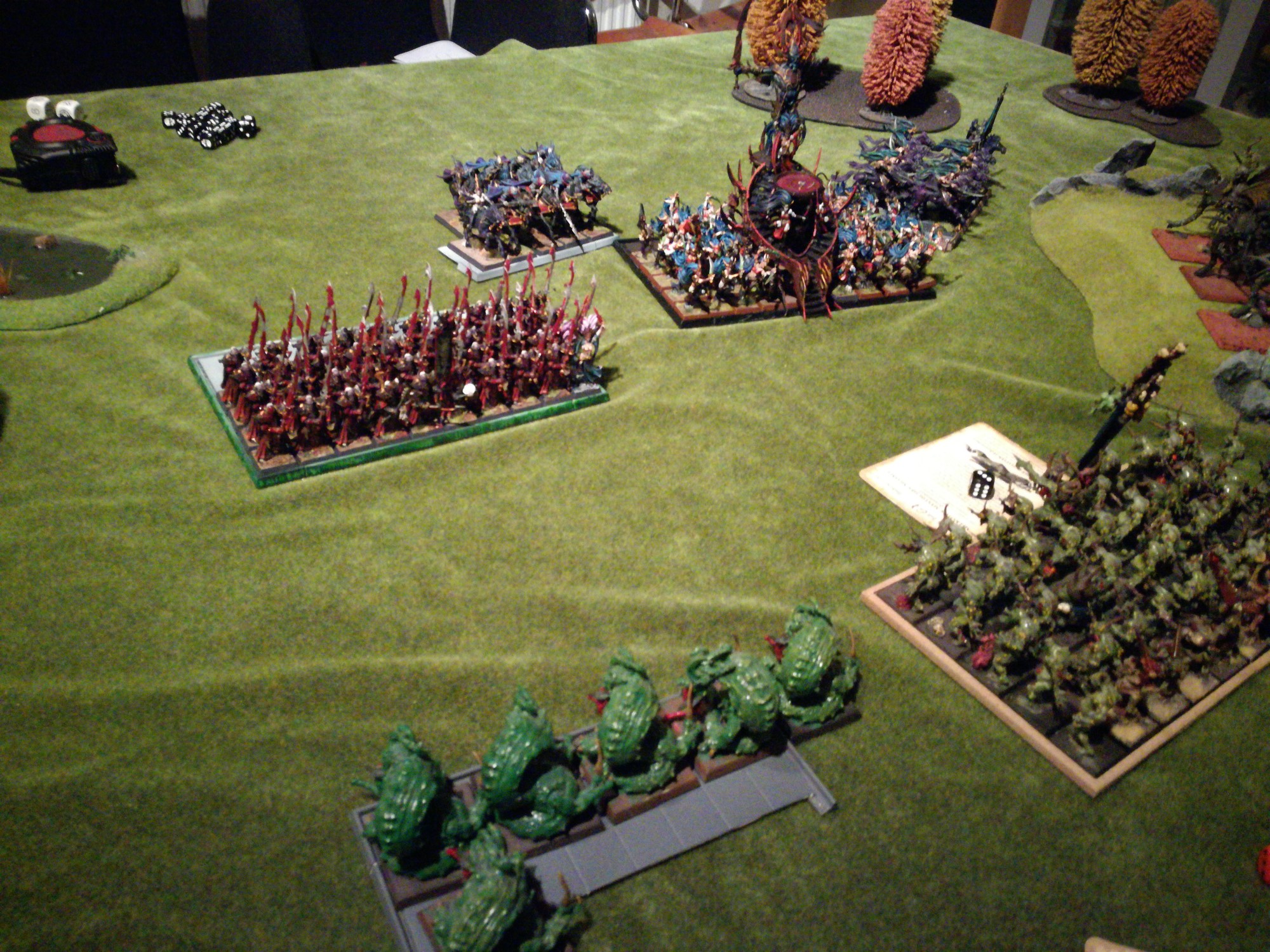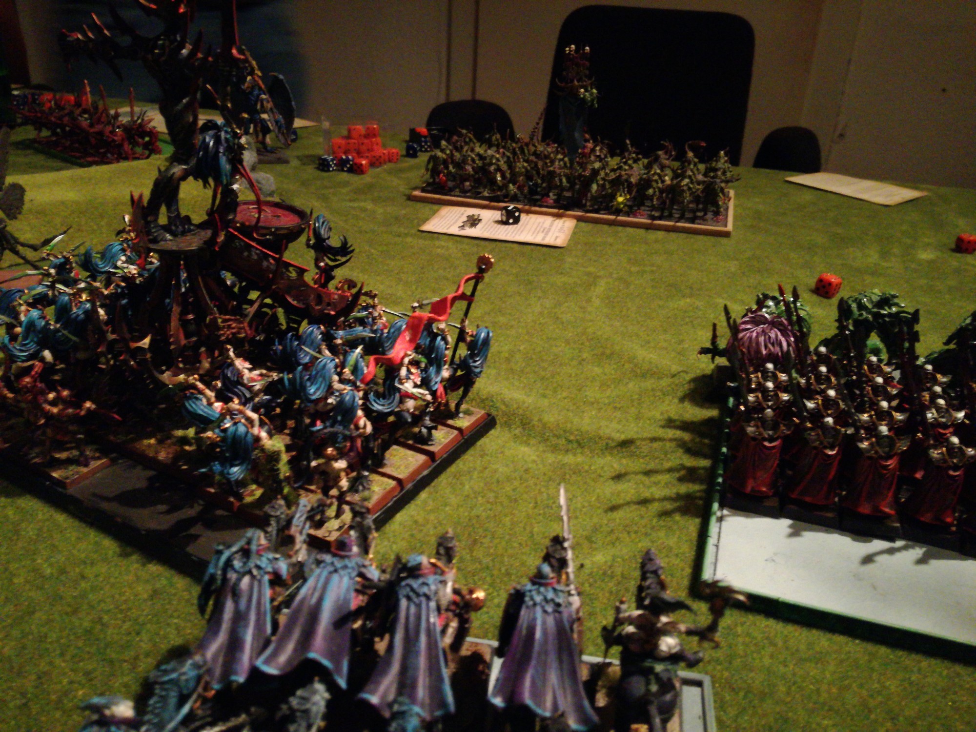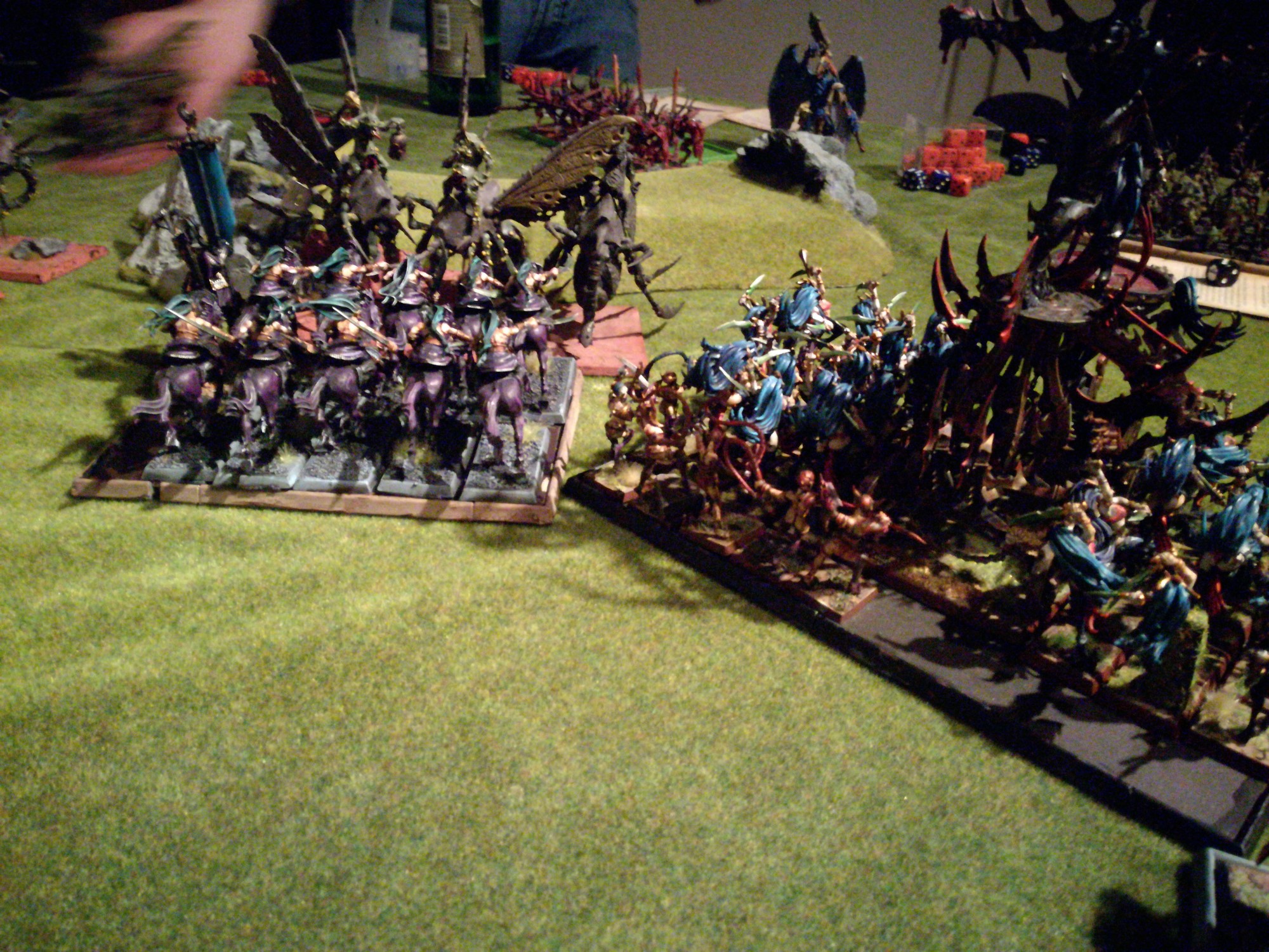 Es stehen zwei Spiele an und ich weiß noch nicht genau, wann wir dazu kommen. Wenn ich genug Bilder machen kann und mich an genug Details erinnere, möchte ich die Spiele aber gerne hier als Schlachtberichte verwerten. Die Spiele stehen jeweils unter einem anderen Stern. In dem einen führe ich meine Dunkelelfen gegen die (größtenteils Nurgle - und alles was von den anderen Göttern spielstark ist) Dämonen eines Freundes. In der letzten Partie gegen besagten Freund sind meine Korsaren und Monster, angeführt von einem Bestienmeister auf Streitwagen in der Umarmung von Nurgles Dienern erstickt. Ich konnte nur fassungslos am Spielfeldrand zusehen, wie schlecht sich meine Truppen geschlagen haben. In der anstenden Revance will ich es den Dämonen nicht mehr so leicht machen und mal wieder das fieseste stellen, was Naggaroth zu bieten hat. Angeführt von Hellebron. Dabei ist folgende Liste herausgekommen: