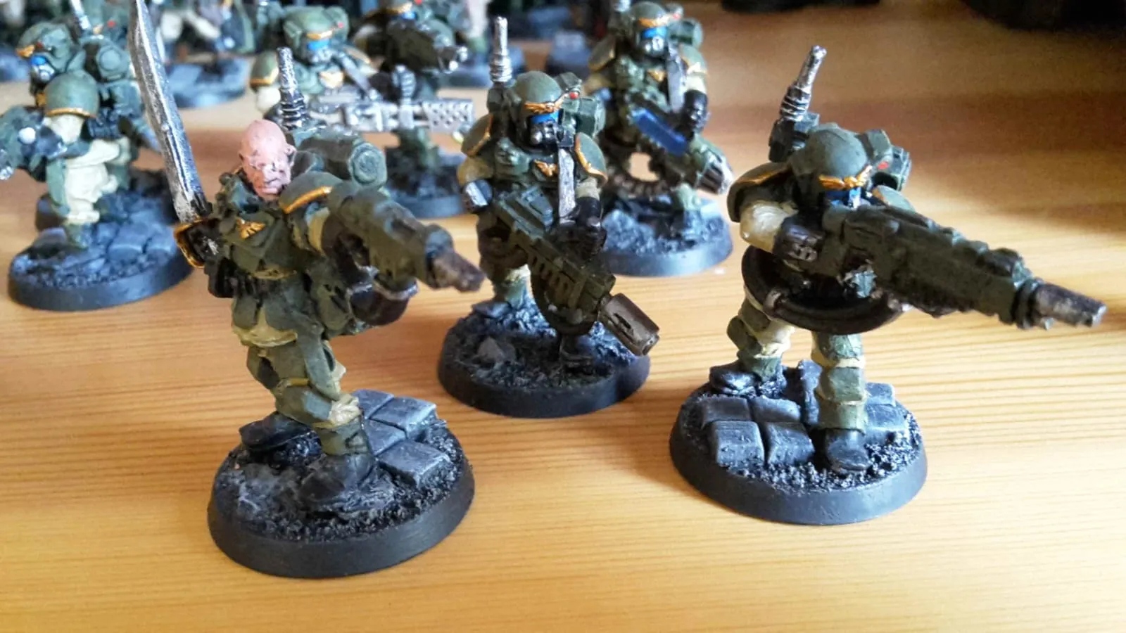 So. Es hat etwas gedauert, aber nun habe ich auch meinen ersten Veteranentrupp endlich überarbeitet. (Kamera lässt leider etwas zu wünschen übrig.)