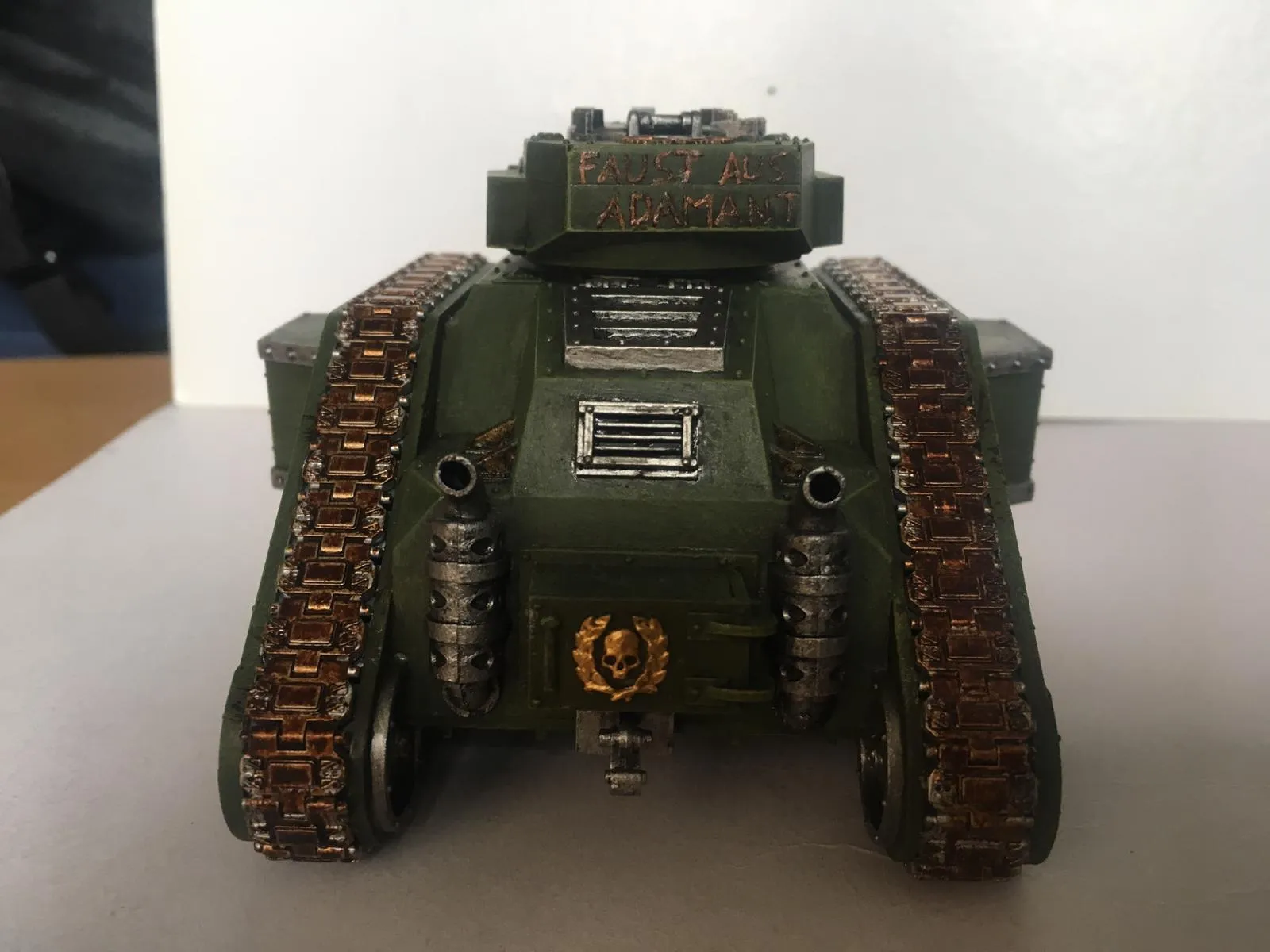 Eigentlich soll der Name eine Anspielung an die "Herz aus Gold" aus "Per Anhalter durch die Galaxis" sein. Ich hatte mir überlegt, den nächsten beiden Panzern Namen wie "Geist aus [...]" und "Leib aus [...]" zu geben. Eigentlich sollte der zweite schon "Geist aus Adamant" heißen. Ich vergass es jedoch beim Bemalen ![]()