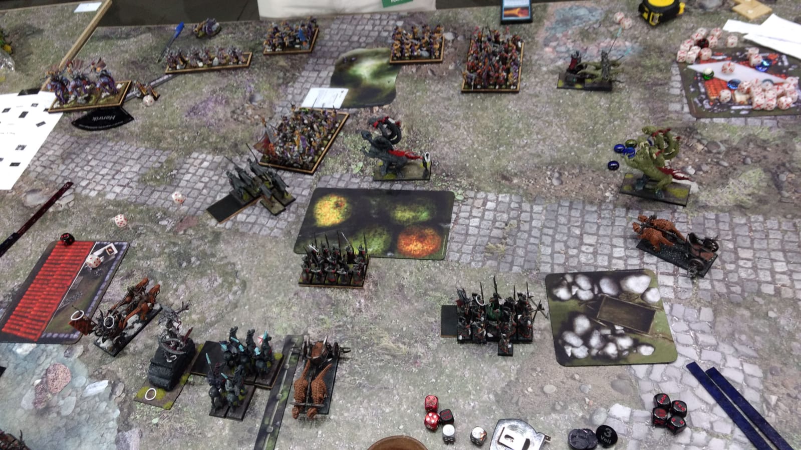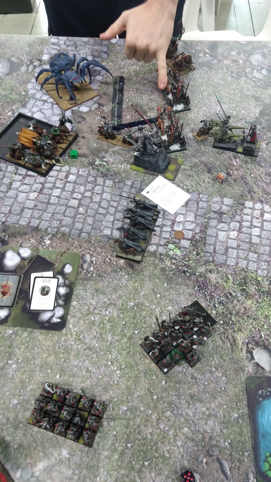 In meiner Mache ich mit der Hydra den Durchgang oben zum Unpassierbaren zu, schiebe Hydra und Lord in seine Jäger, die brechen im Nahkampf und er gibt mir die Hand in meiner 3. Runde, ein guter start ins Turnier, wenn man hier oben mitspielen will, muss man auf alle fälle jedes Spiel gewinnen, wenn eins nicht so hoch gewonnen wird, muss der Rest dafür um so höher sein, das heißt jetzt natürlich auch, dass der Gegner noch stärker ist.