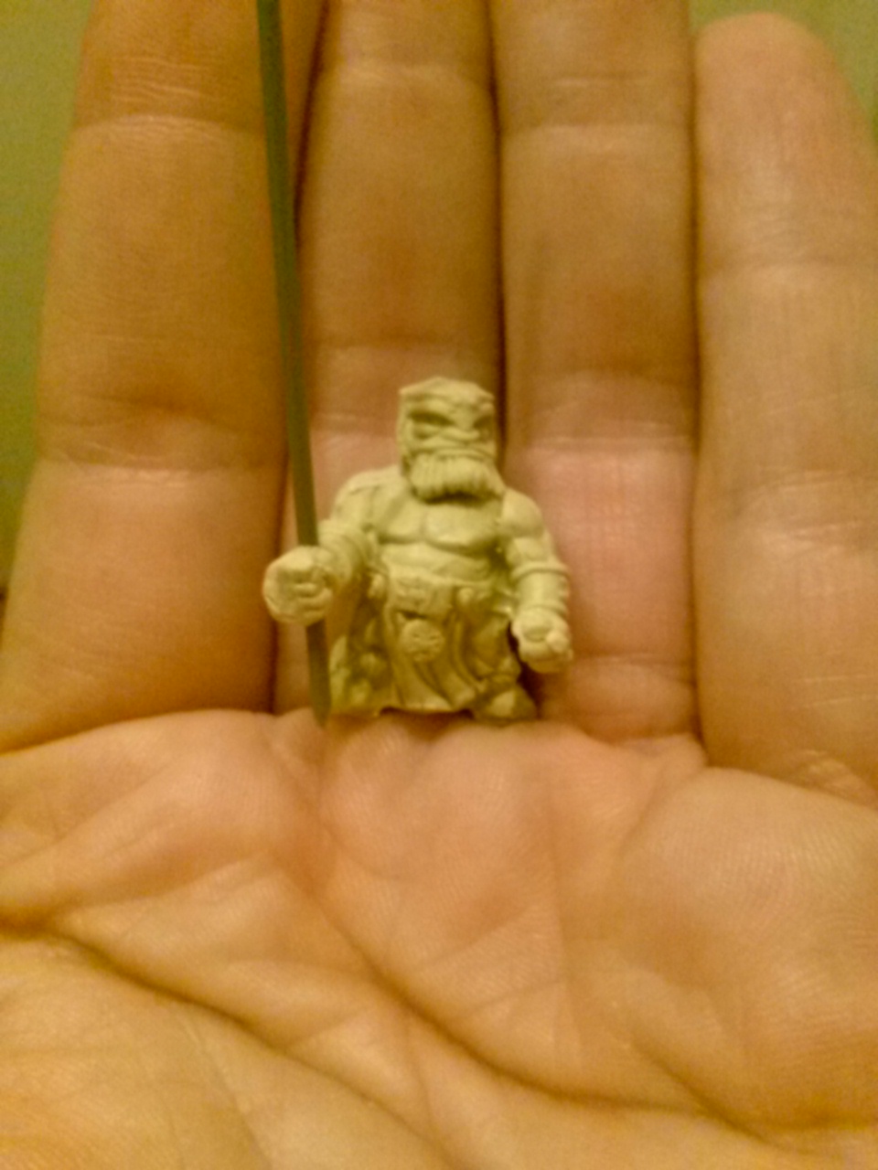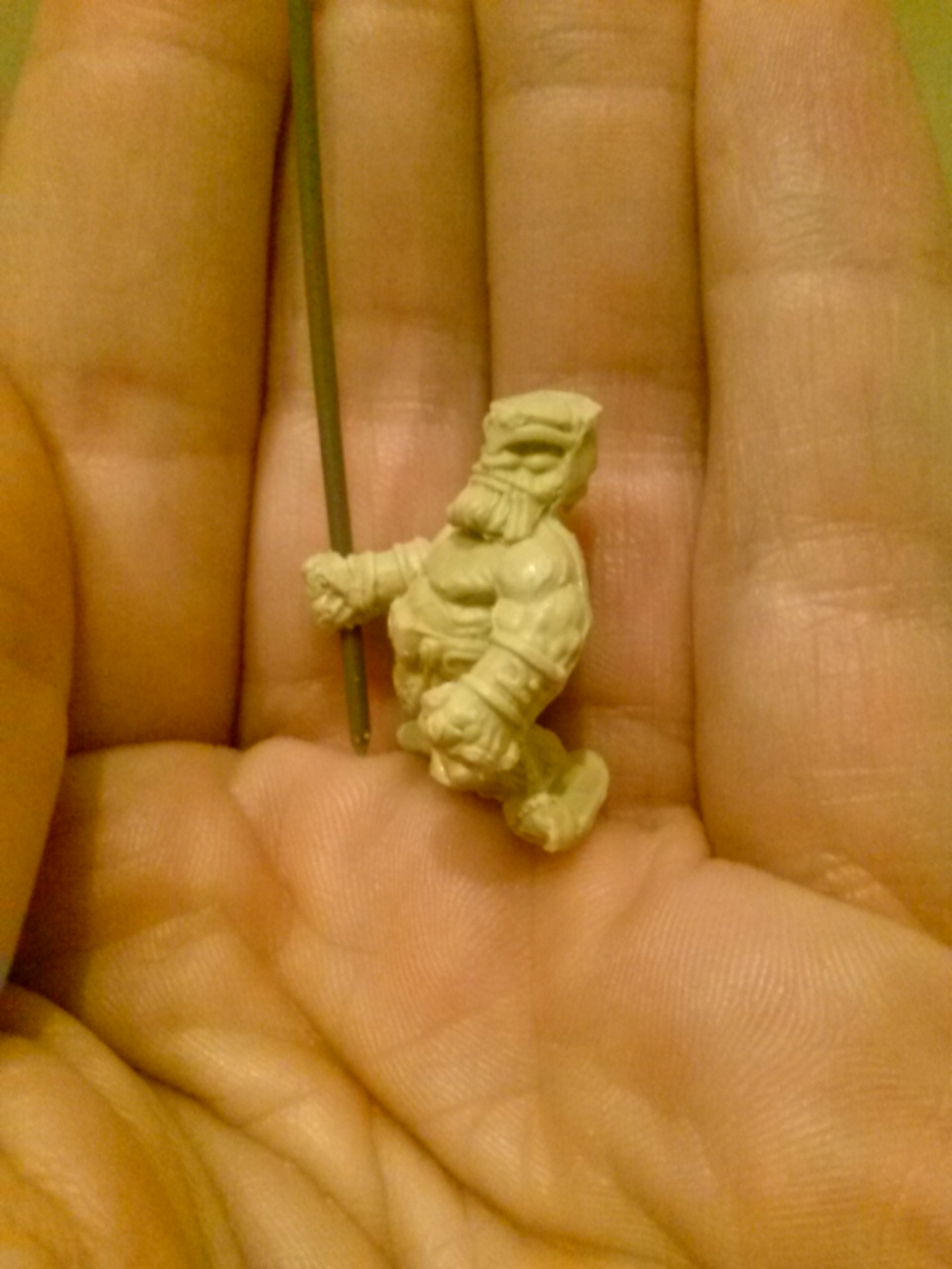 Beide Abgüsse scheinen ganz gut gelungen und das mit nur einer Form. Mittlerweile bin ich auch von zweiteiligen Abgüssen abgekommen, da die besten Ergebnisse durch eine Form erreicht werden bei mir. Man muss sie nur ca. zur Hälfte einschneiden, Originalfigur entnehmen und für 2-3 Löcher (Gusskanal bzw. zum Entlüften) sorgen. Ich brauche sogar nicht einmal mehr Gummis zum verschliessen der Formen wenn das Harz eingefüllt ist. Desweiteren ist es Vorteilhaft, wenn man das Harz nicht sofort einfüllt sondern ein klein bisschen wartet, bis es einwenig dickflüssiger wird (aber eben nur ein wenig !)...dann läuft das Harz auch nicht aus der Einschnittritze bzw. den Löchern heraus (oder zumindest weit weniger).