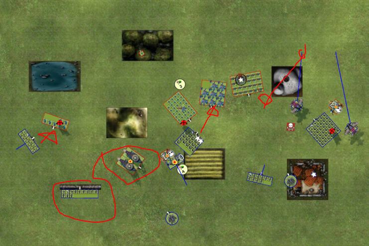 In meinem 1. Zug hätte ich die Kriegsmaschinen in der Ruine nach vorne bewegen sollen.