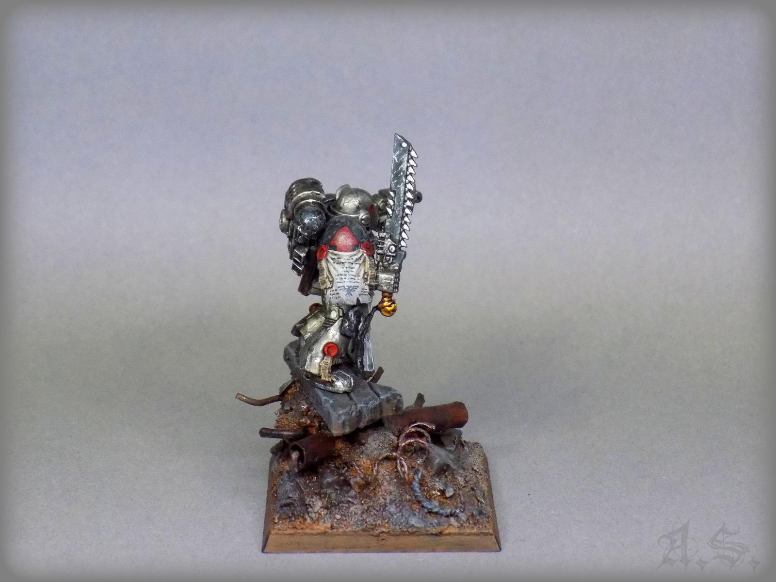 Dann folgt eine Vignette, die einen "Blood Angels" Ehrengardist zeigt, mit Energiehammer.