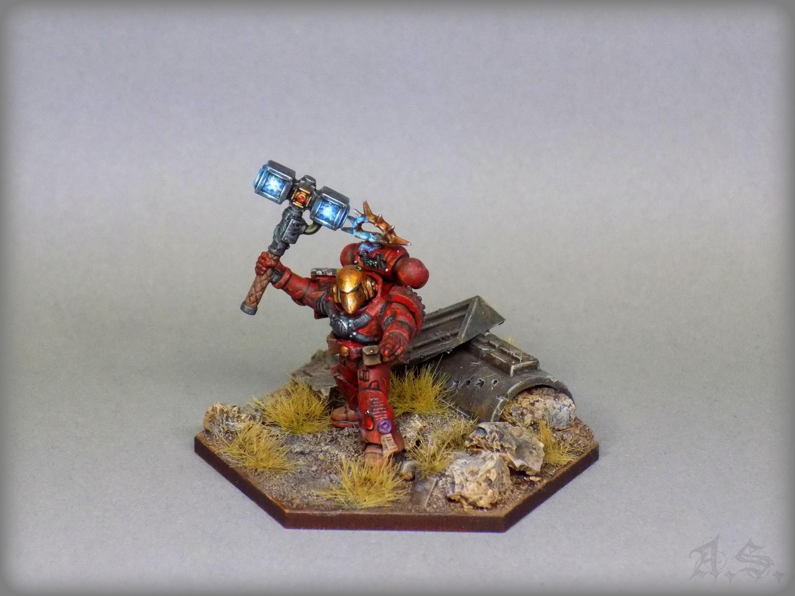 Dann folgt eine Vignette, die einen "Blood Angels" Ehrengardist zeigt, mit Energiehammer.