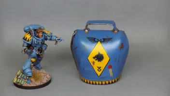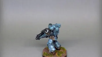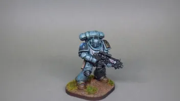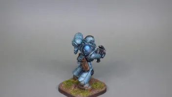 Die Rüstung ist ein gemischtes hellblau metallic, Akzente sind schwarz, weiß