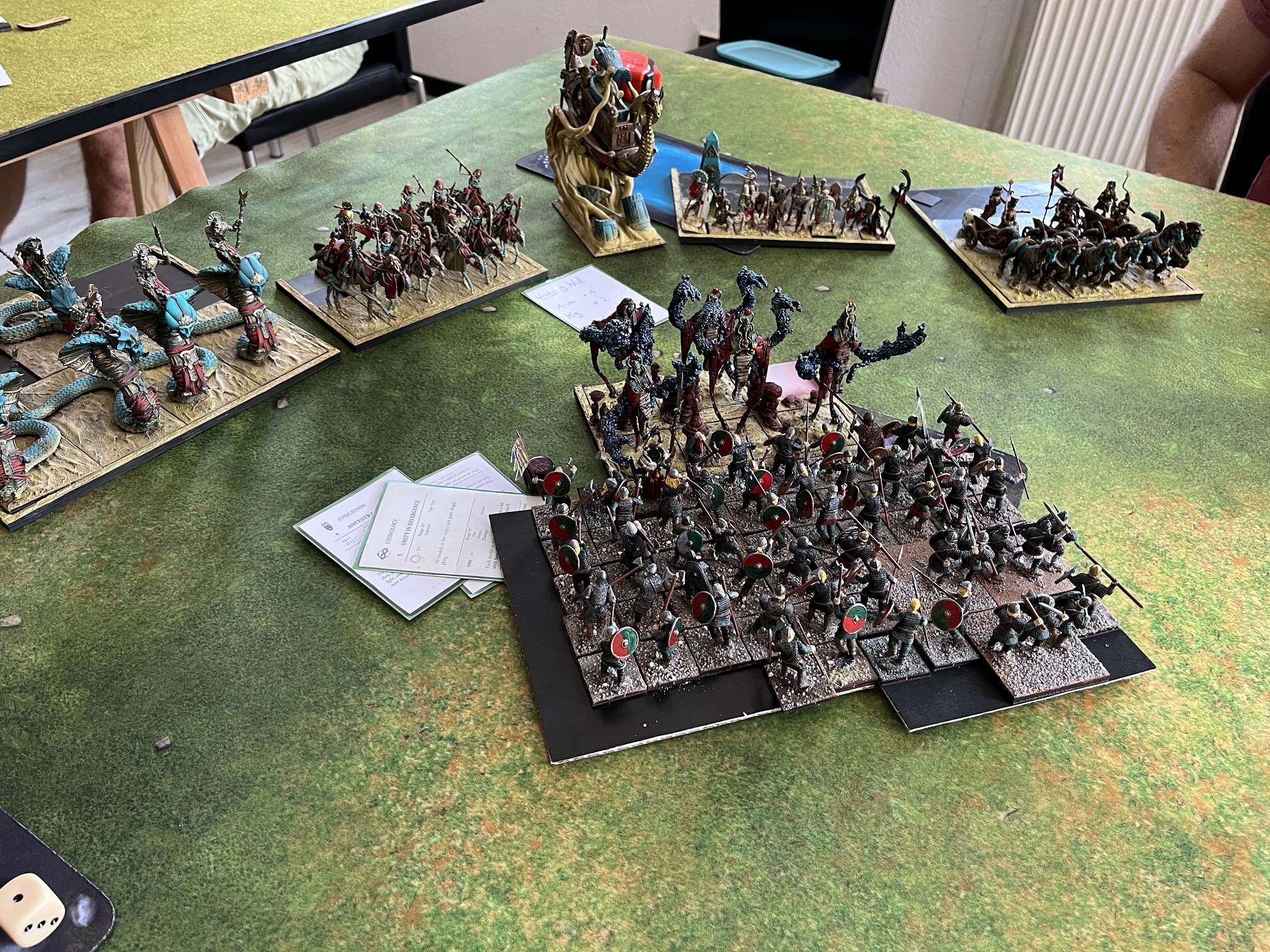 Übrigens war meine eigentlich Liste ebenfalls UD und erst heute Morgen ist mir aufgefallen, dass die UD dann 3x von 12 Spielern vertreten wären und hab dann mit Jones Einverständnis die Armee zu wechseln.