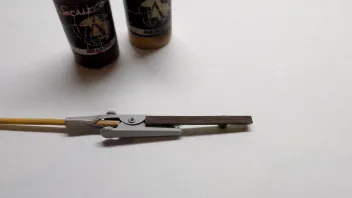Mit der Pfeilespitze ritzt man in einer Richtung für die "Fasern" des Holzes, je stärker ich drücke desto tiefer die Strucktur: