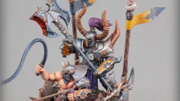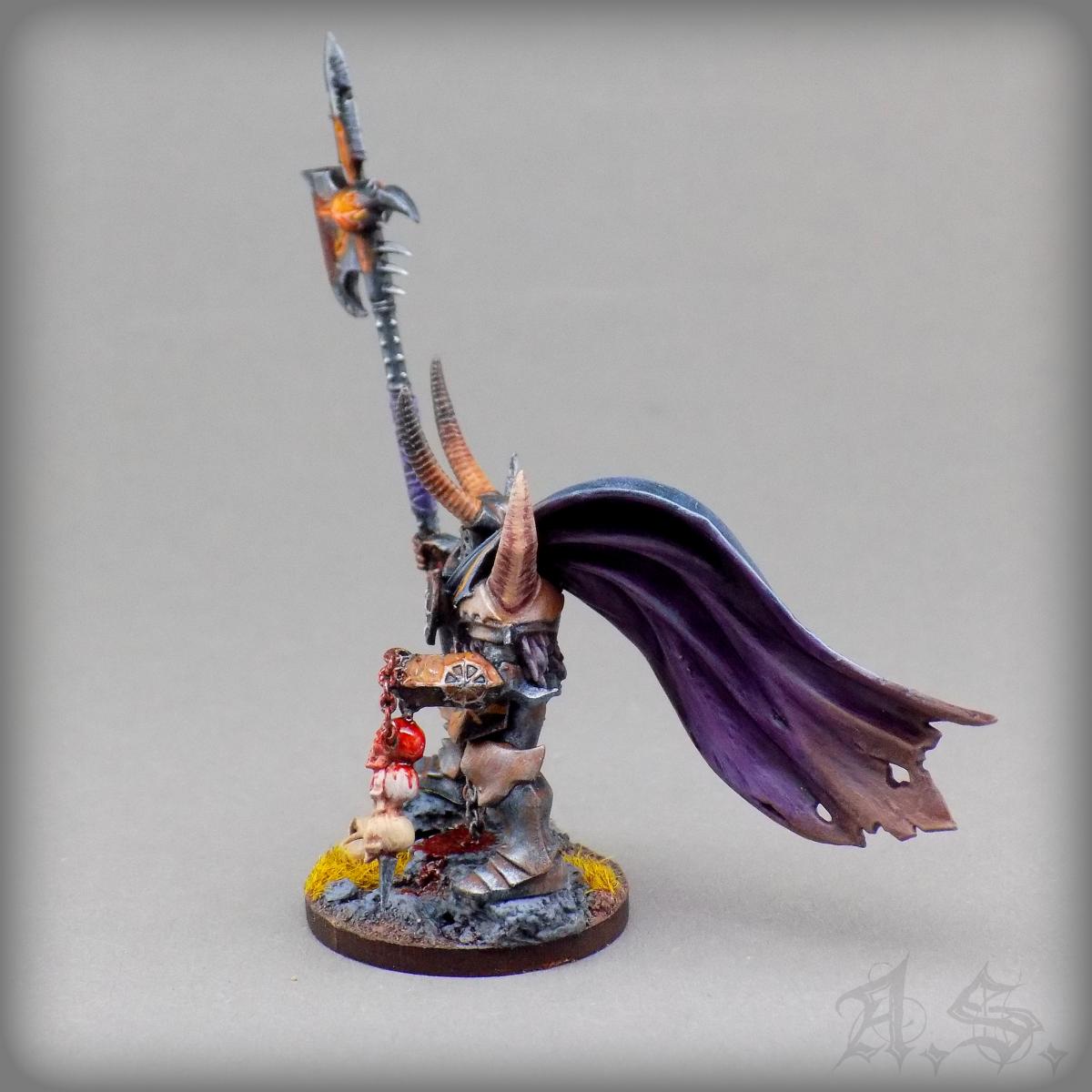 Ich habe Ihn ein wenig umgebaut, so z.B. die vom Chaos gepeinigte Hellebarde, eine Schädelsammlung seiner Siege und einige andere Details wie Helm usw..