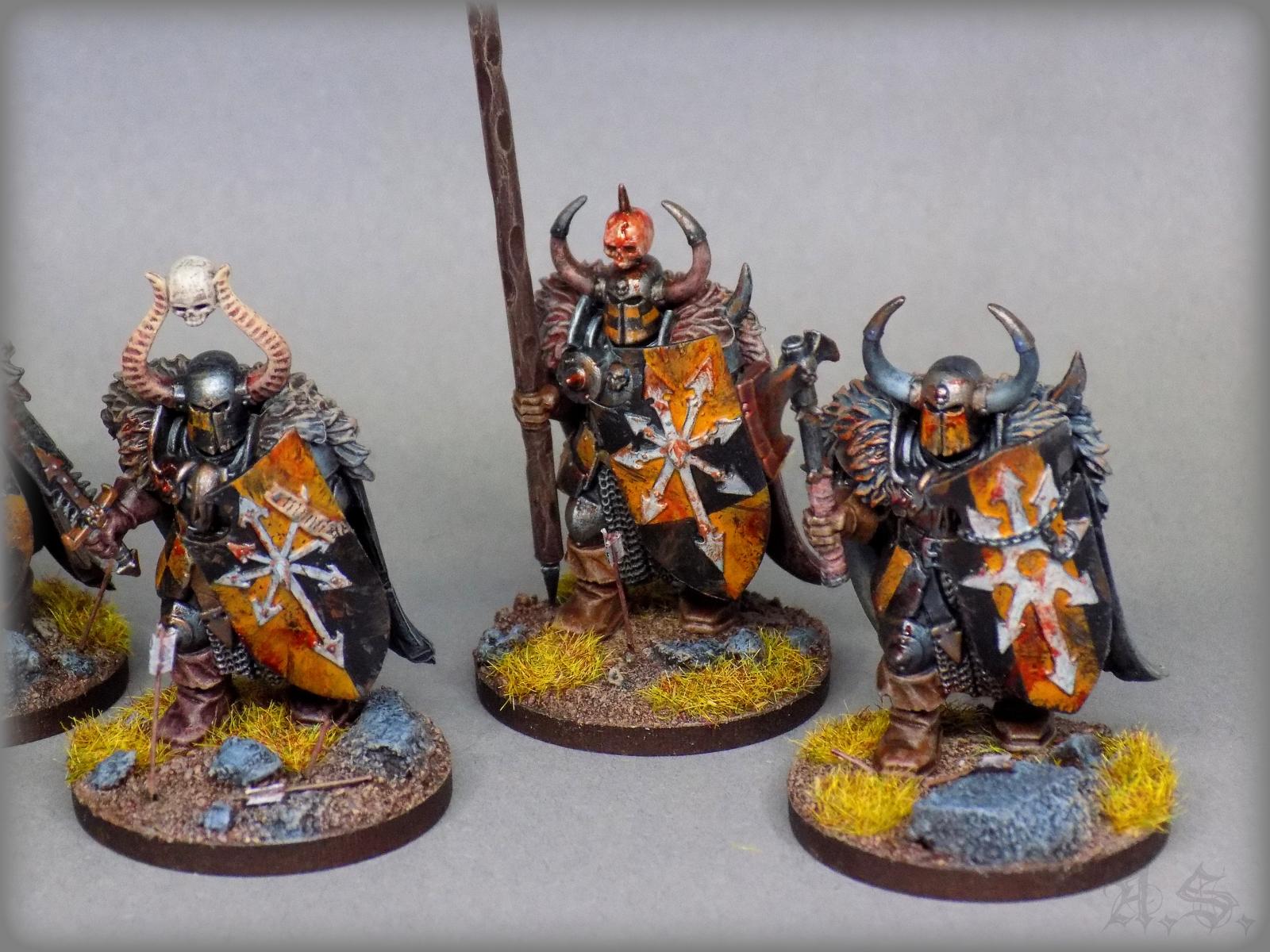 1.) Nun gerade übermäßigen Rostlook wollte ich vermeiden, zum einen sind die Rüstungen, Waffen und Schilde immer speziell behandelt, um es nicht rosten zu lassen bei gescheiter Pflege, zum anderen mache ich keine Untoten oder Seuchen, wo wie ich finde, dieser Look noch besser passt, ABER eine gewisse art von "Used" wollte ich entstehen lassen, da diese Jungs mehr und mehr an Schlachten interessiert sind und daher ihre Ausrüstung doch etwas darunter leidet.