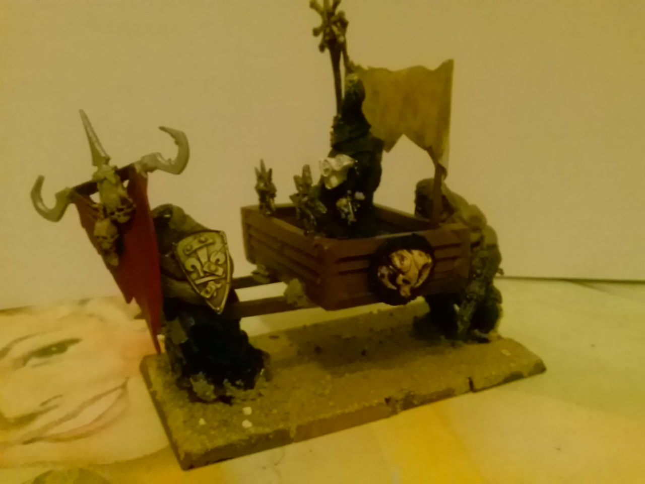 das Modell ist noch nicht ganz fertig, es fehlen noch ein Paar Ketten oder Schädel zum abrunden. Auf das Banner sollen noch Runen oder Text mal sehen wie ich das hin bekomme.