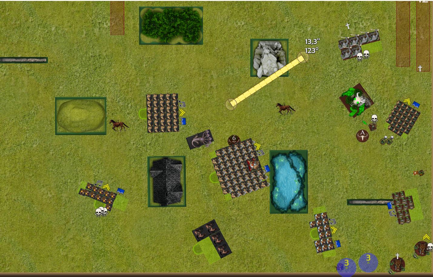Die beiden Infanterie Einheiten in die Nähe der Marker, je eine Krake an die Flanken und die schnelle Sachen an die Flanke damit war ich ganz zufrieden bis mein Gegner eine Eckburg baut und ich meine Aufstellung nicht mehr so geil fand.