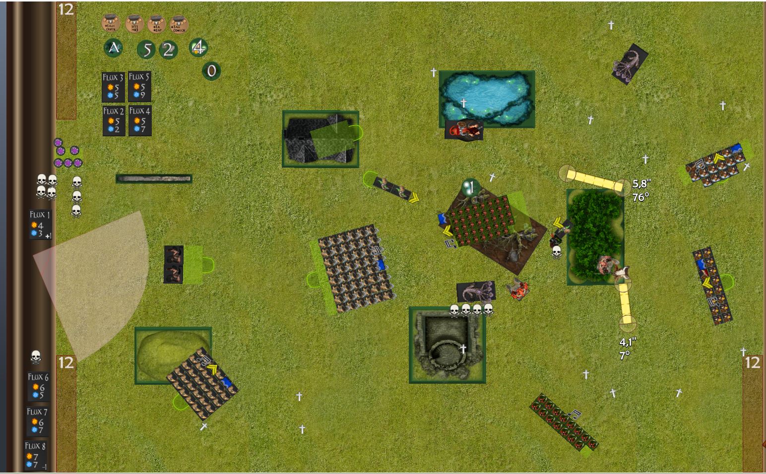 Meine Husklas sagen einen Angriff auf die Orks an diese laufen und ich fange sie nicht. Der Rest lauft vor um in der nächsten Runde angriff ansagen zu können, die gesammelten Husaklas laufen zum Marker. Die Speeträger zum zweiten Marker