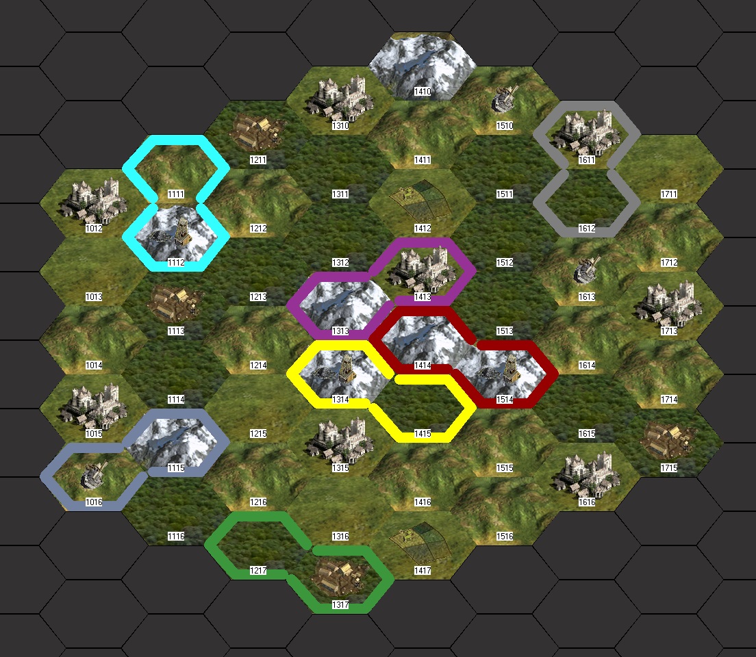 o Einnahme von unbebauten Feldern für 1 Punkt oder Siedlungen/Minen für 2 Punkte (Sollte das Feld bereits besetzt sein, so muss es vorher siegreich angegriffen werden.
