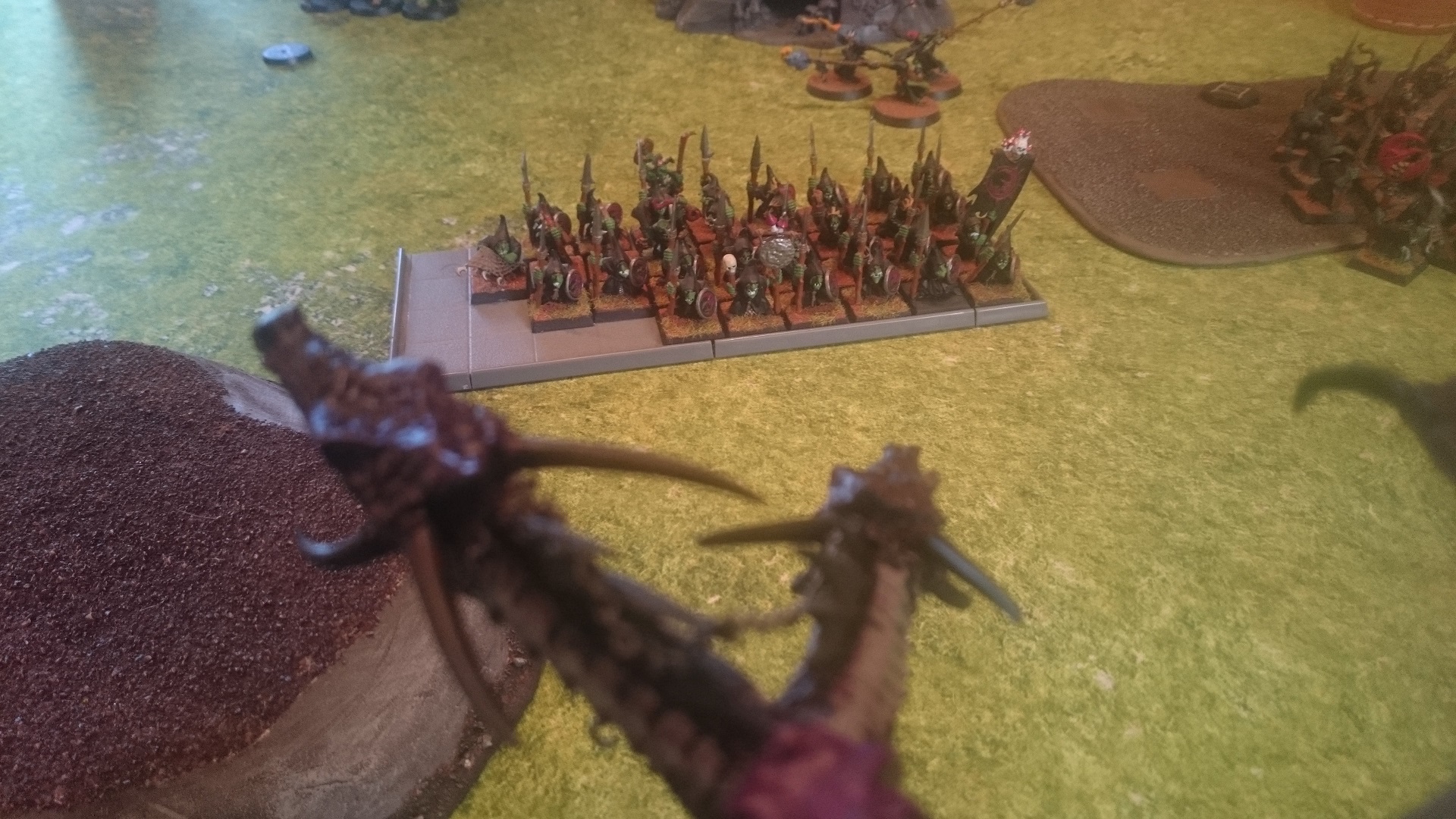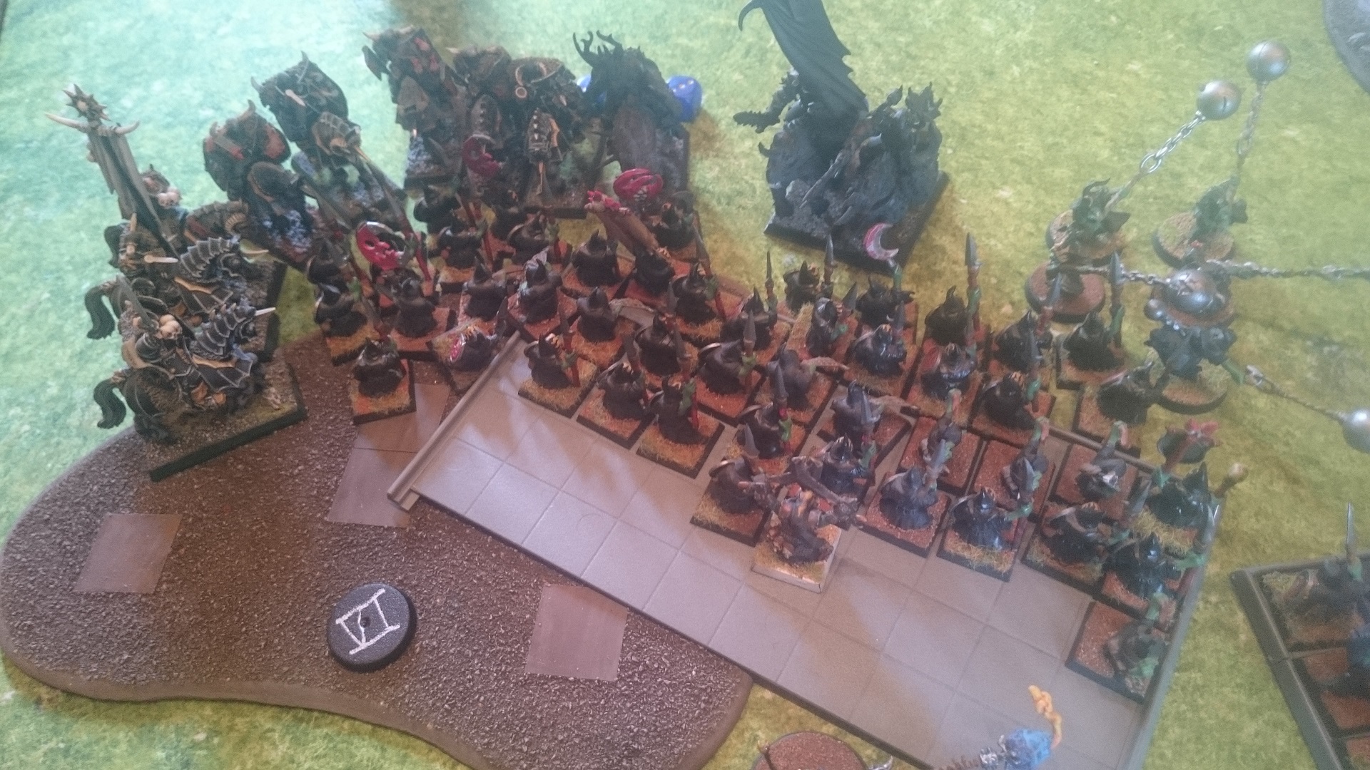 Nachdem die vorhergehende Offensive der kleinen Zipfelmützenträger gegen die Skaven dem bösen Mond garnicht gefallen hat, waren sie nun um so fester entschlossen den Skaven diese Schmach heimzuzahlen und schickten jeden Squig, den sie finden konnten in die Schlacht. Das Ergebnis war die Vernichtung einer großen Eshin-Streitmacht, welche von einem Rattendämon befehligt wurden. 8:1 für die Gitz.
