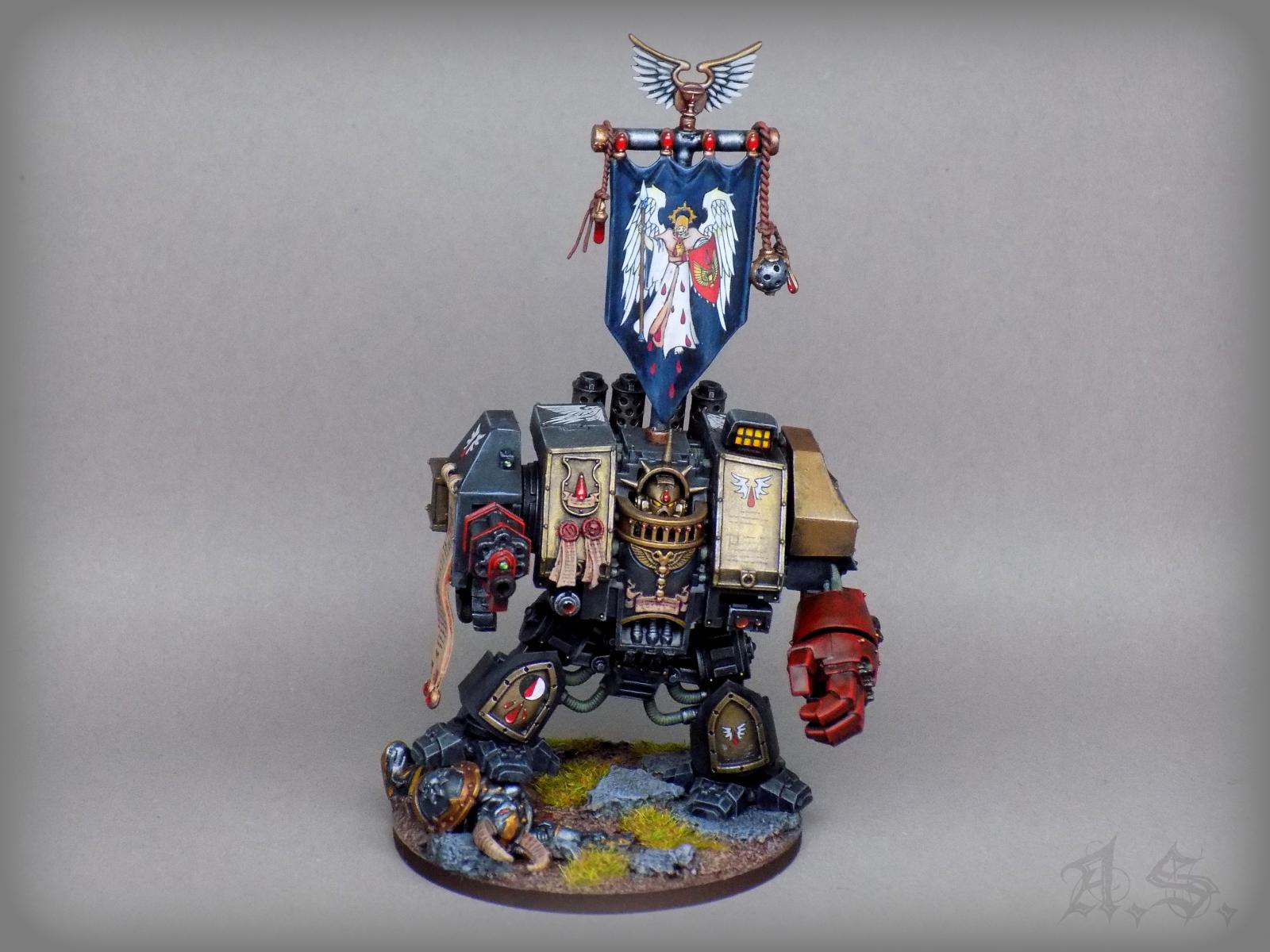 Diesen Dreadnought habe ich vor Ewigkeiten mal begonnen für die "Sons of Medusa", dann wollte ich ihn für die "Death Company" ummalen....,