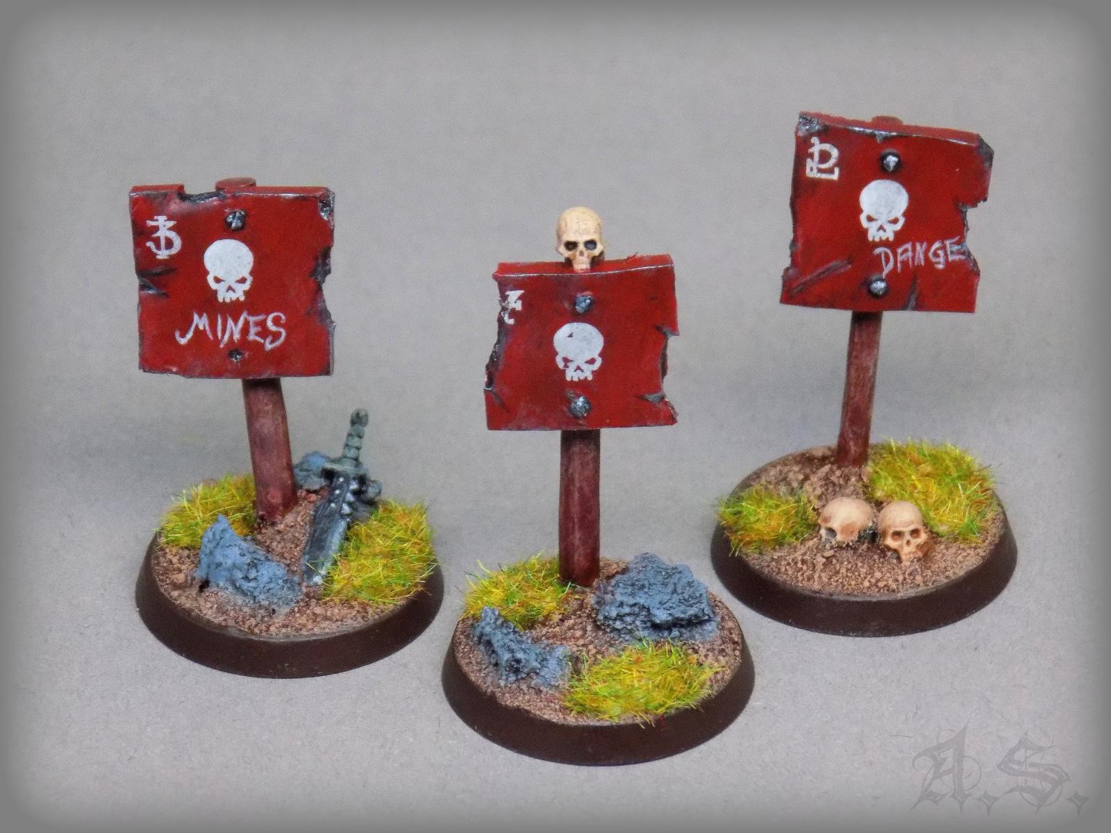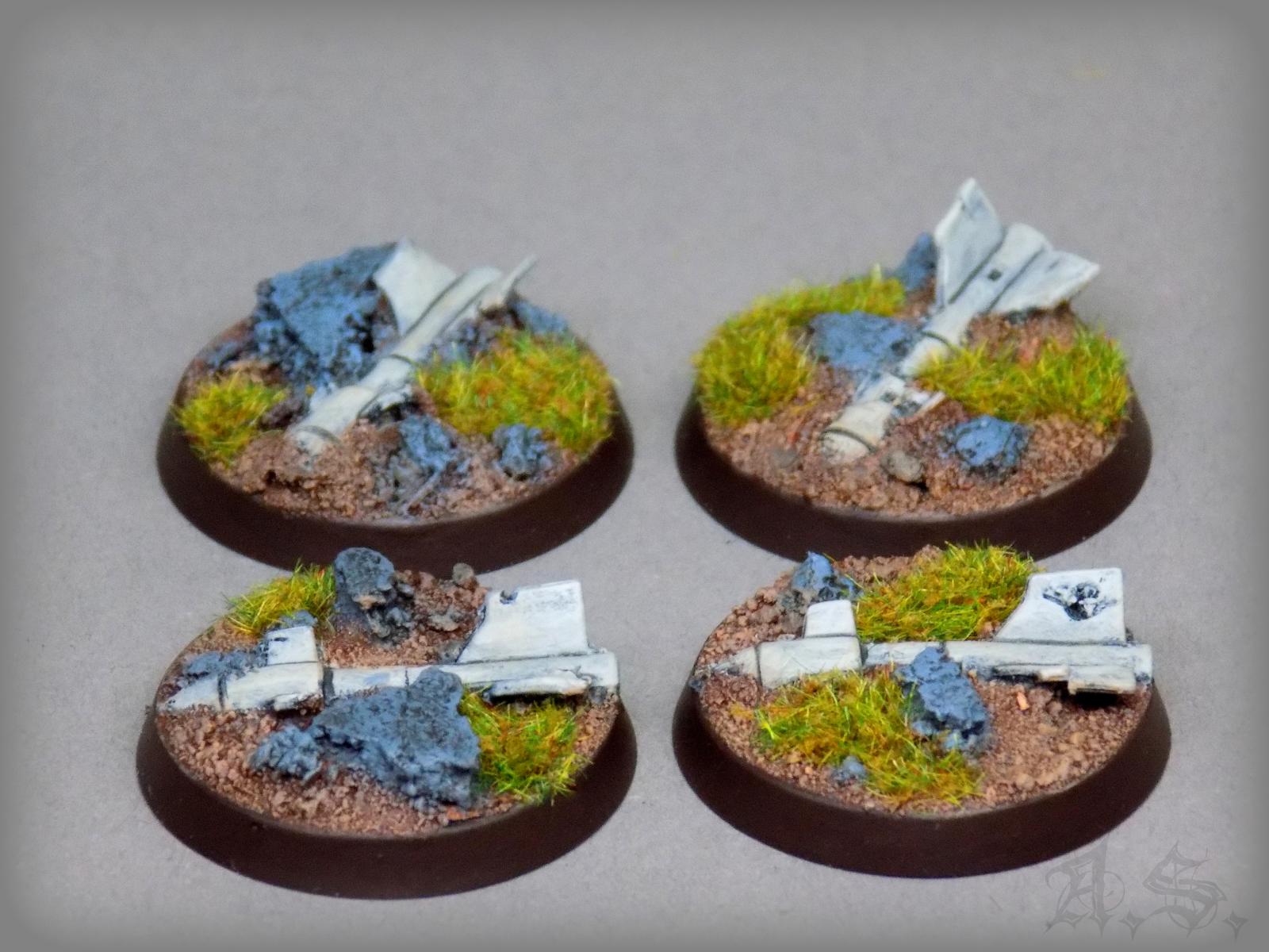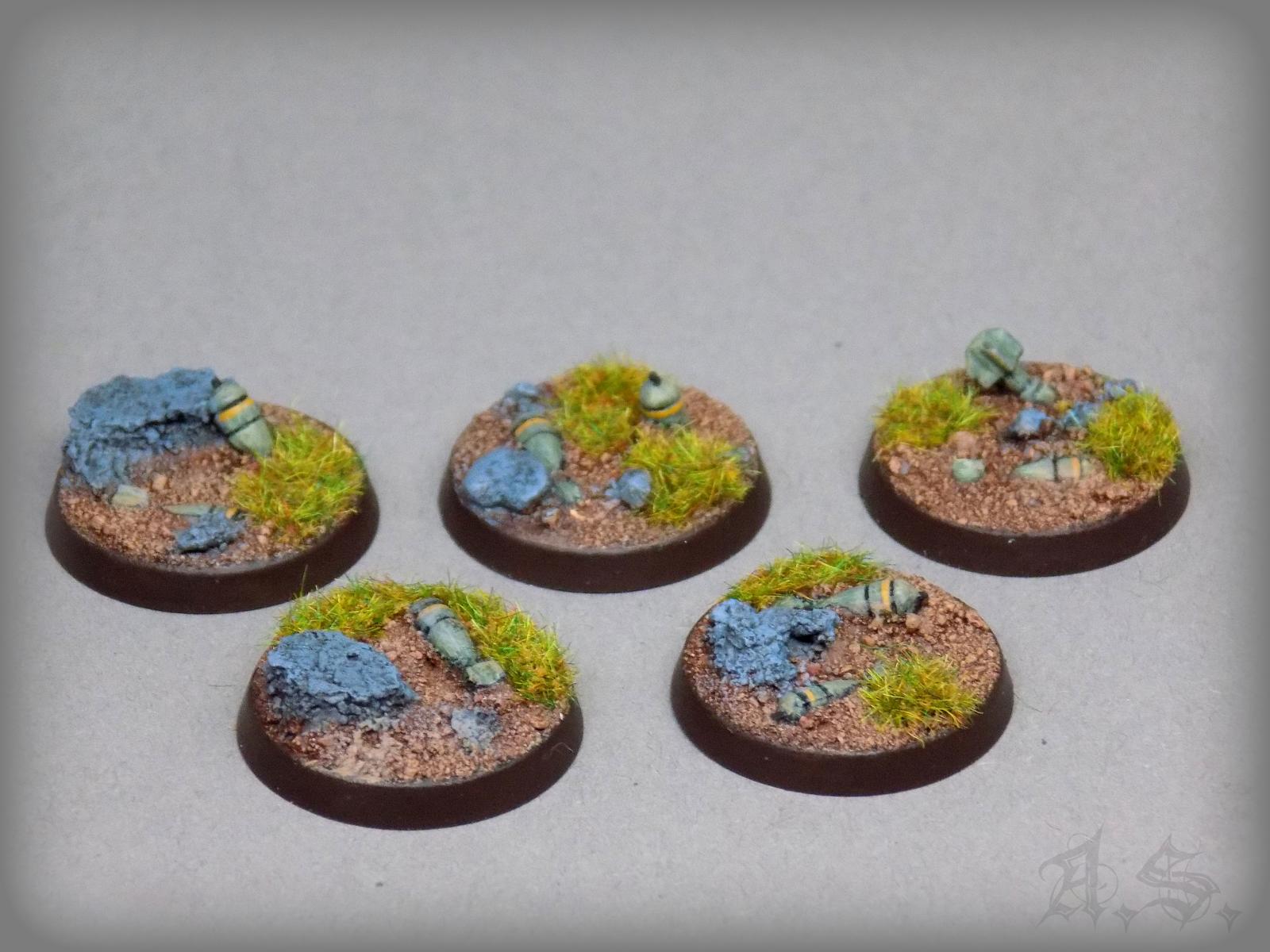 Also weiter Inspiration geholt und meine Bits-Boxen durchstöbert, um zu sehen was ich alles so zusammen bekommen, dabei rausgekommen sind 15 kleine "Geländestücke oder Marker" für meine Söhne auf 32mm und 25mm Base, sie sind zwar sind ganz soo cool wie die von GW, aber damit es zum einen in der Vitrine schön ausschaut und zum anderen auch auf der Spielfläsche seine Verwendung finden könnte, war es mal was neues für mich, was Spaß gemacht hat.