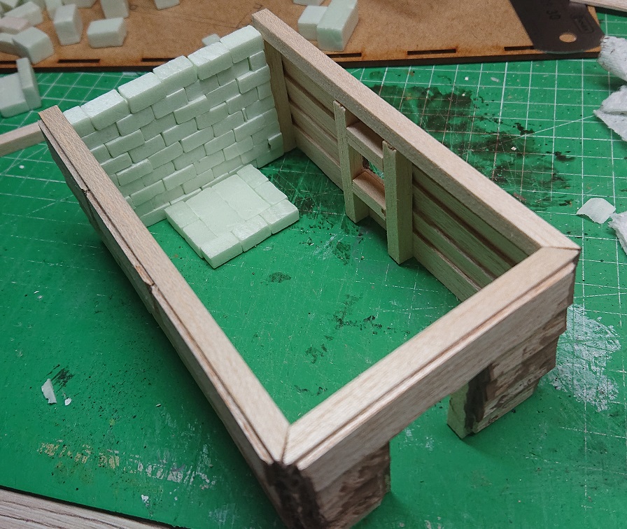 Jedoch fand ich die Lösung für den Schornstein nicht passend, von daher musste hier nochmal nachgearbeitet werden. Im Hintergrund sieht man auch ein "paar" vorbereitete Styrodur-Steine.