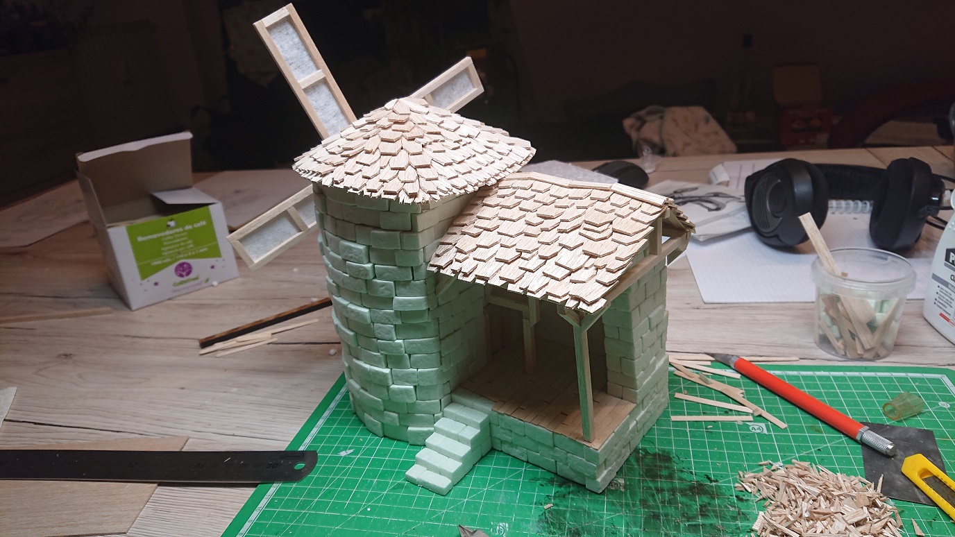Die nächsten Schritte sind dann das Bemalen der Windmühlenflügel und der Dachschindeln, sowie die Verdrahtung und Anbringung der Lampen.