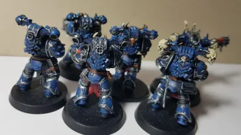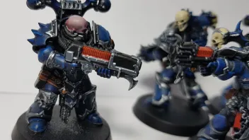 - Es gibt nur noch wenige Kriegerbanden, die der alten Legion und der Pracht von damals nachtrauern, jetzt aber nicht mehr stark genug sind um sich gut zu versorgen (wie die Black Legion und Red Corsairs z.B.). Außerdem sind sie Night Lords, d.h. sie kämpfen eigentlich keine offenen Feldschlachten. => Wenige Panzer etc.; evtl. Fokus auf Kampf in Städten und auf Raumstationen und Schiffen => Einheiten und Bases.