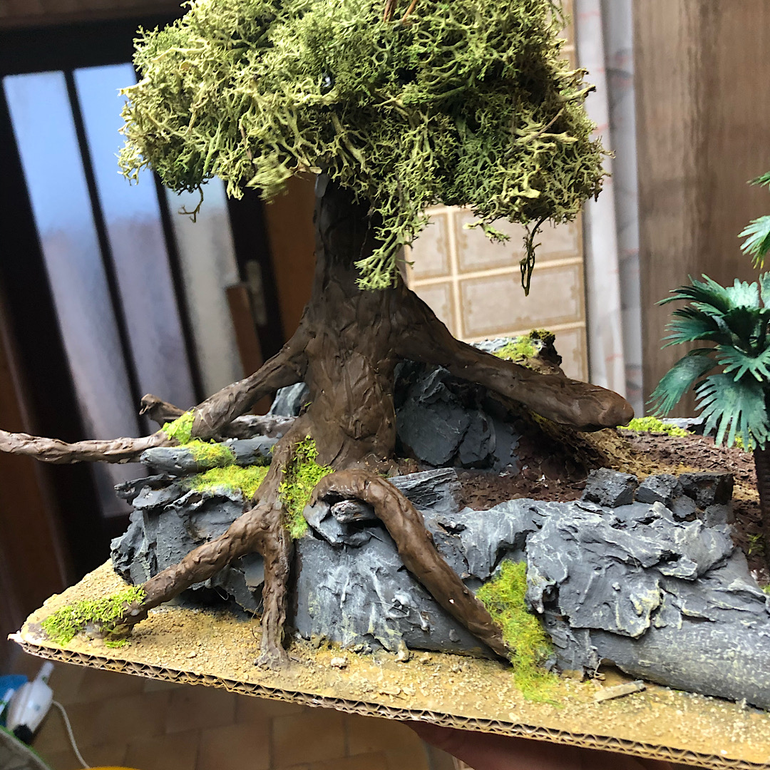 Alufolie und Modelliermasse klingt gut, dass muss ich auch mal ausprobieren. Ich habe meinen kleinen Baum aus Draht gebaut und dann Klopapier mit Leim drum gewickelt. Das ist es aber sehr Nervend aufreibend und zeitintensiv.