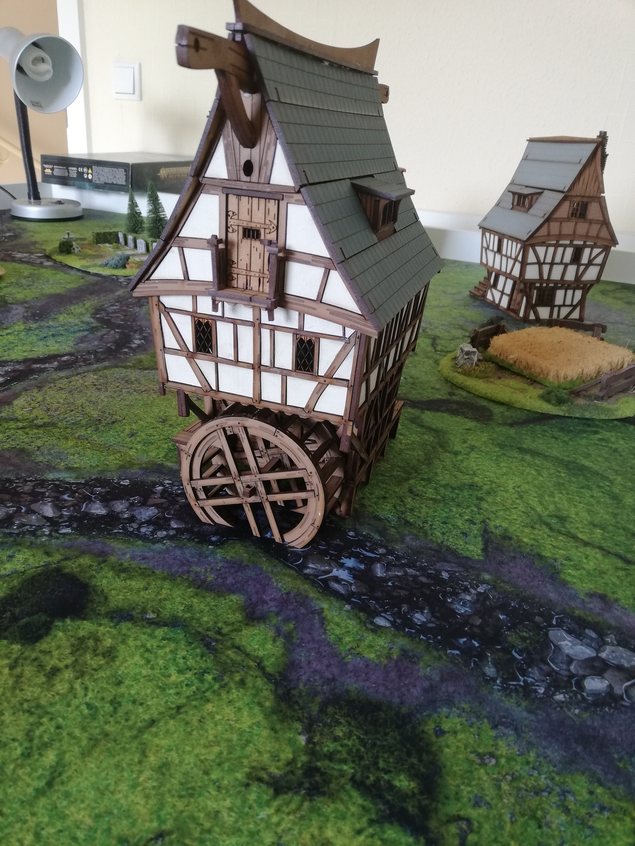 Diese Wassermühle fügt sich gut in die Bestehenden Gebäude ein, welche ebenfalls von 4Ground sind. Meine Spielmatte hat einen kleinen Flusslauf auf dem ich mir das Gebäude wirklich gut vorstellen konnte. Und ich bin Begeistert wie gut es das auch im Gebauten zustand macht.