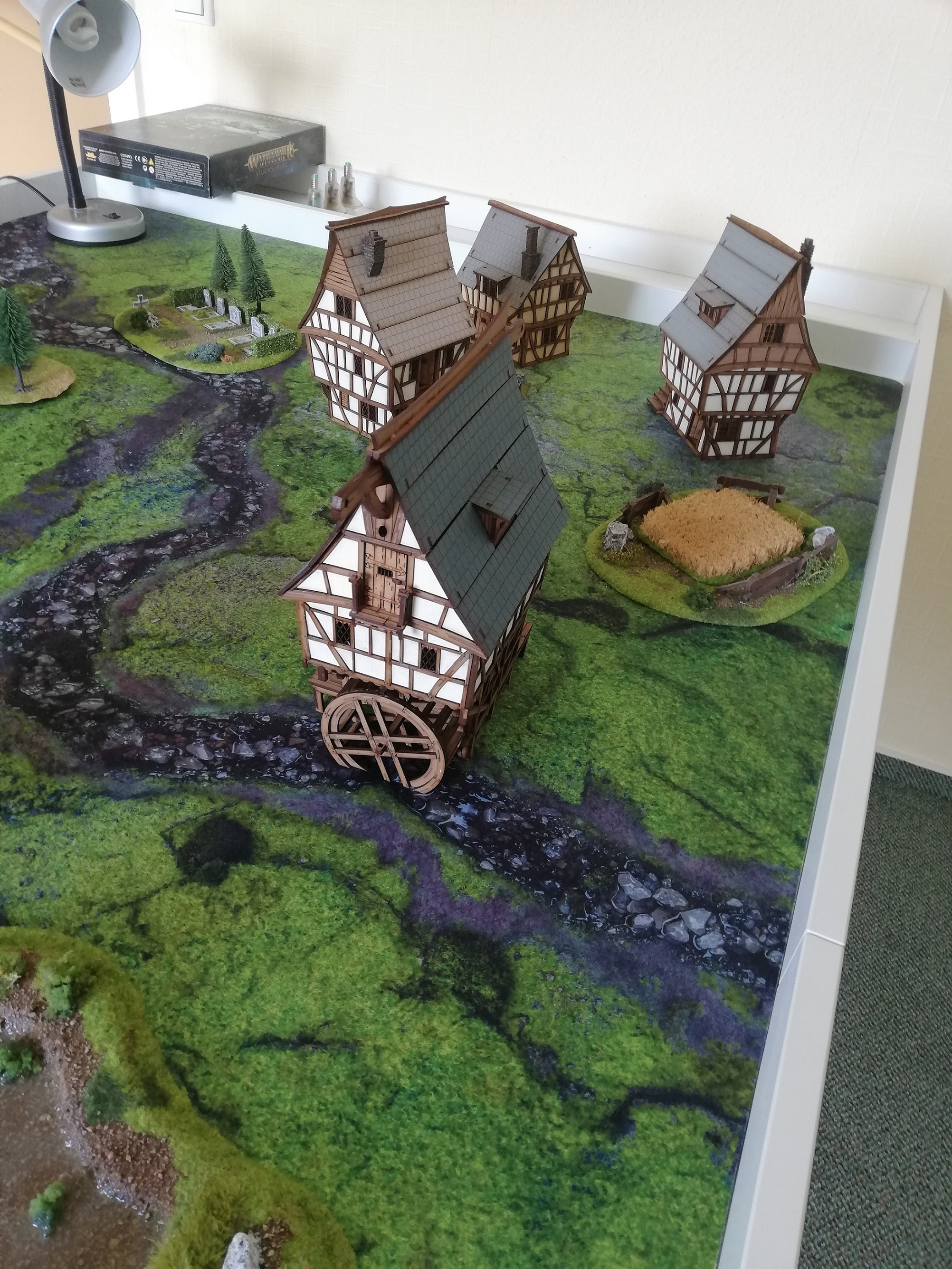 Diese Wassermühle fügt sich gut in die Bestehenden Gebäude ein, welche ebenfalls von 4Ground sind. Meine Spielmatte hat einen kleinen Flusslauf auf dem ich mir das Gebäude wirklich gut vorstellen konnte. Und ich bin Begeistert wie gut es das auch im Gebauten zustand macht.