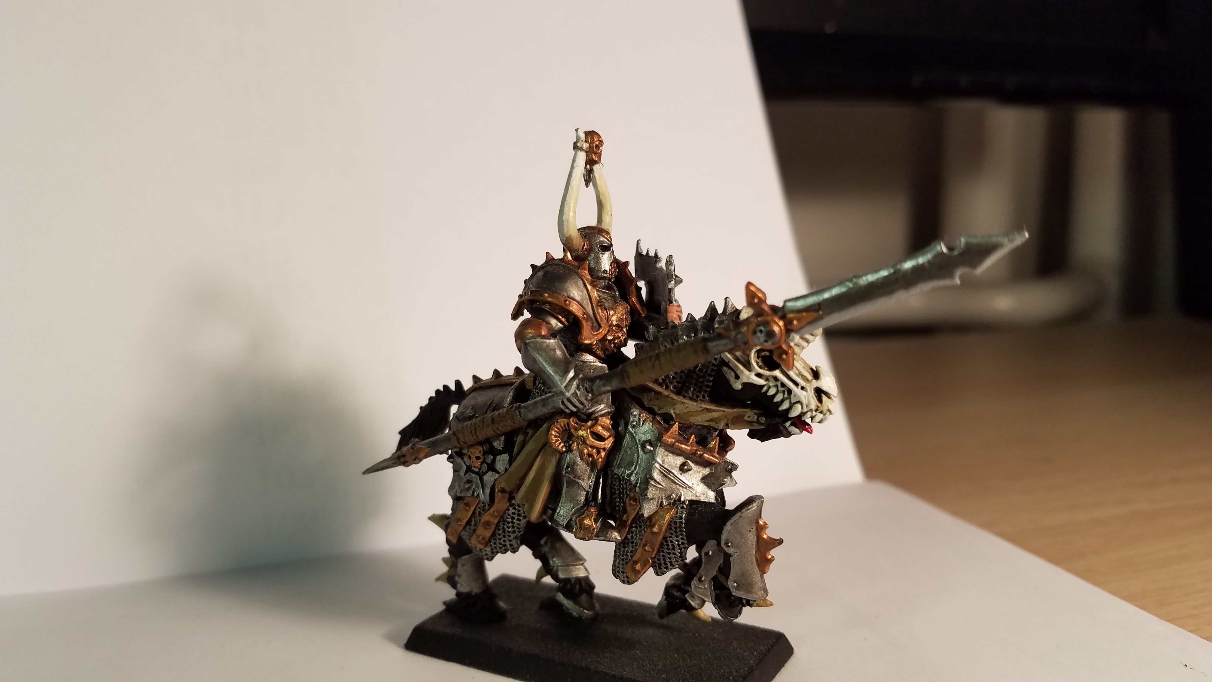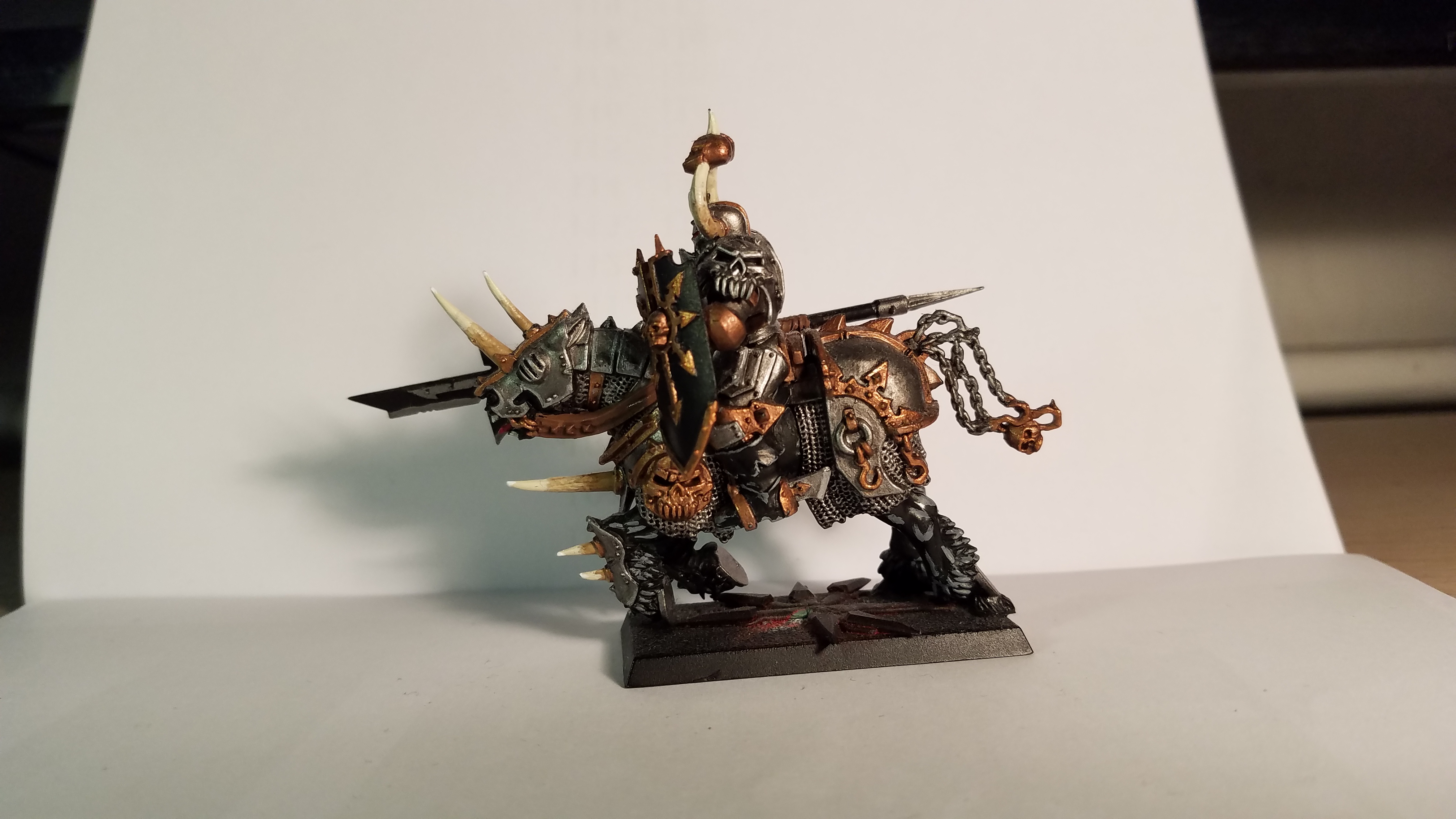 Er hatte seinen Schwur erfüllt und wurde dafür von Khorne belohnt. Er ergriff die Zügel seines Molochs und ritt wortlos Richtung Süden und sämtliche verbliebenen Krieger des Schlachtfeldes folgten ihm. Zum ersten Mal seit 8888 Schlachten verließ er das Schlachtfeld am Rande des Wahnsinns um als größter Champion des Khorne gegen die Reiche der Sterblichen auszuziehen und ihnen den Kriegsschrei entgegen zu brüllen, welcher seit jenem Tag in ihren Albräumen widerhallt.