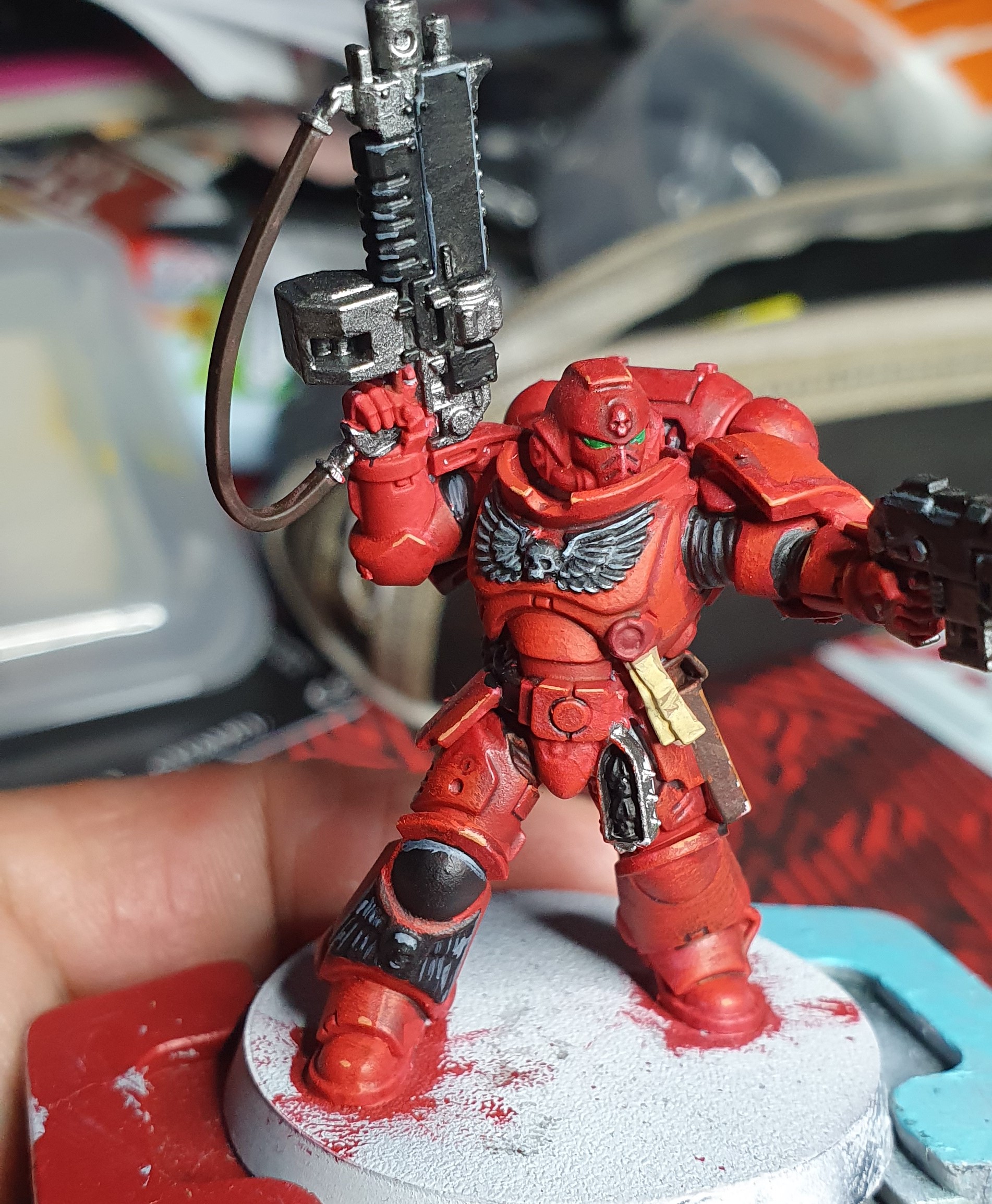 Nachdem ich fast 3 Monate ausschließlich mit Contrast gemalt habe, war ich ganz froh mal wieder richtig malen zu dürfen und habe mich danach auf meine Blood Angels gestürzt: (März 20)