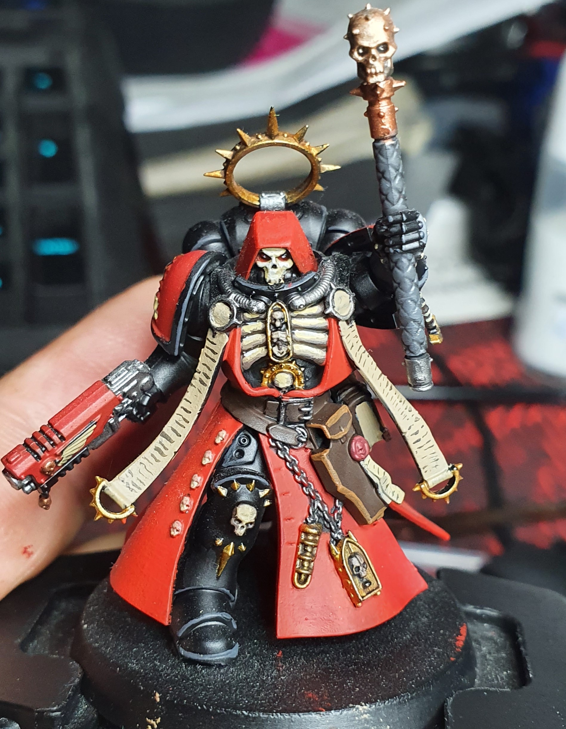 Mein Mephiston ist aktuell einfach mein(!) höchstes Niveau und wenn ich den neben Cawl stelle, der auch mal das schönste Modell war, dass ich hinbekommen habe, ist das toll zu sehen. Haut und ganz speziell Gesichter waren vorher ein Ding der Unmöglichkeit für mich und jetzt sehen sie (nach meinem Standard) sogar gut aus.